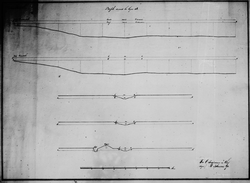 Kaart van dwarsdoorsnede van dijk en haven te Zaltbo...
