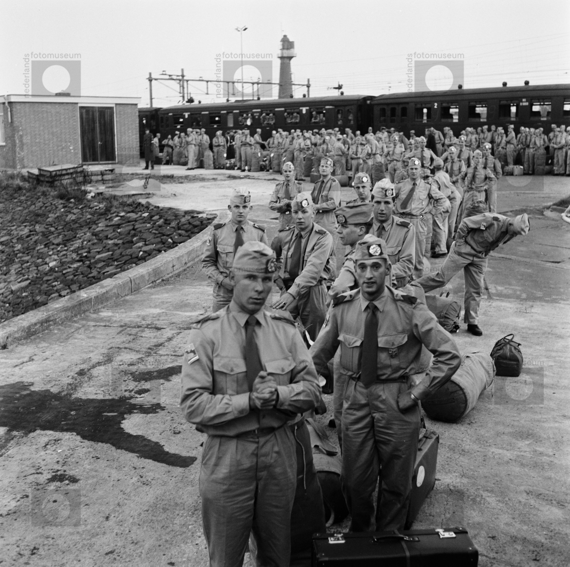 Dienstplichtige militairen komen per trein aan in Ho...