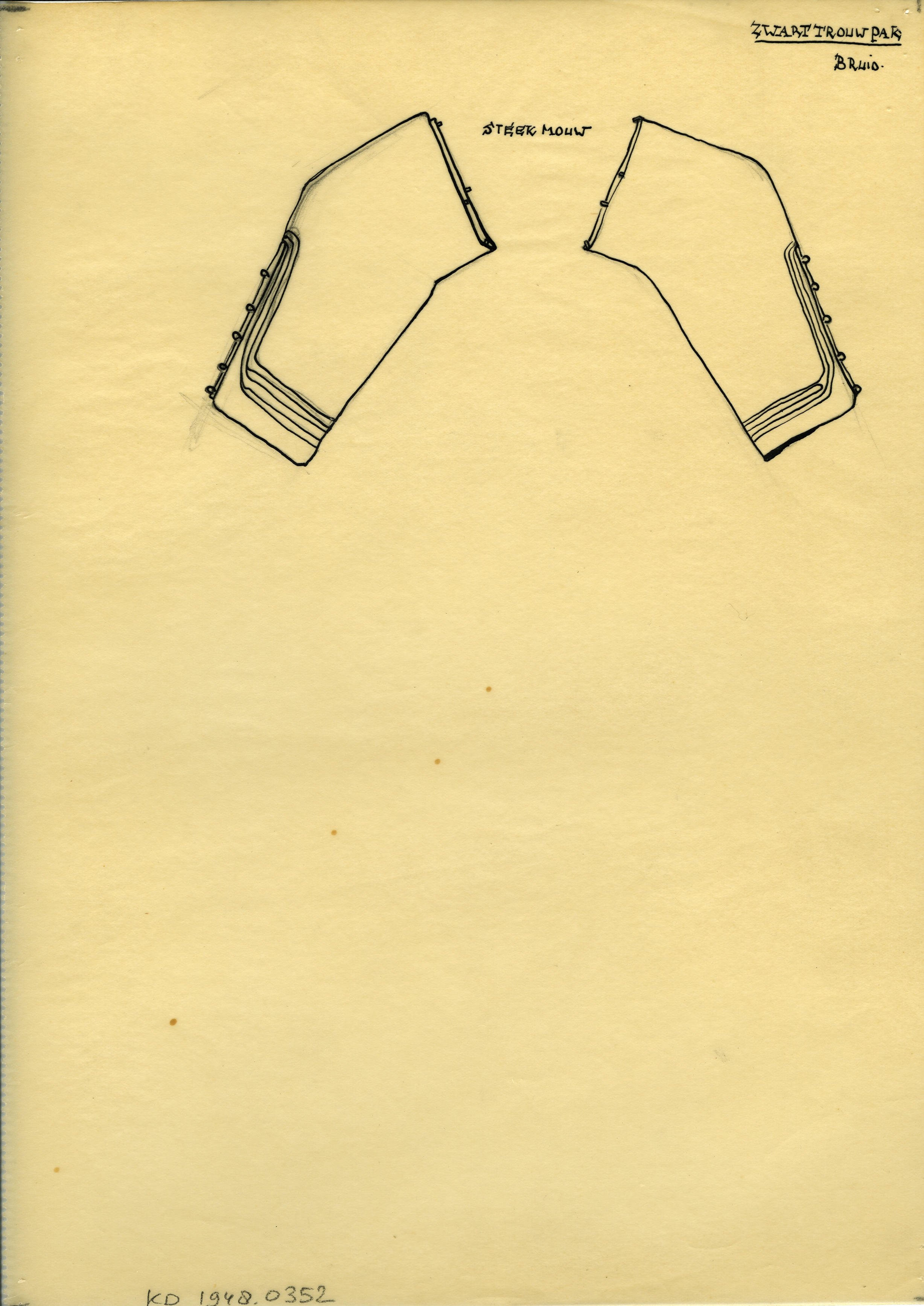 Tekening van het jasje van een zwart trouwpak, Marke...