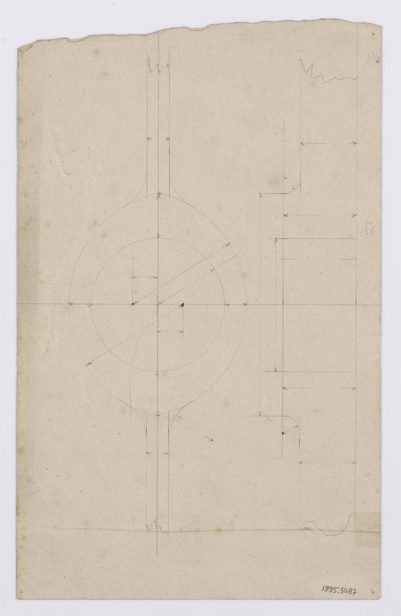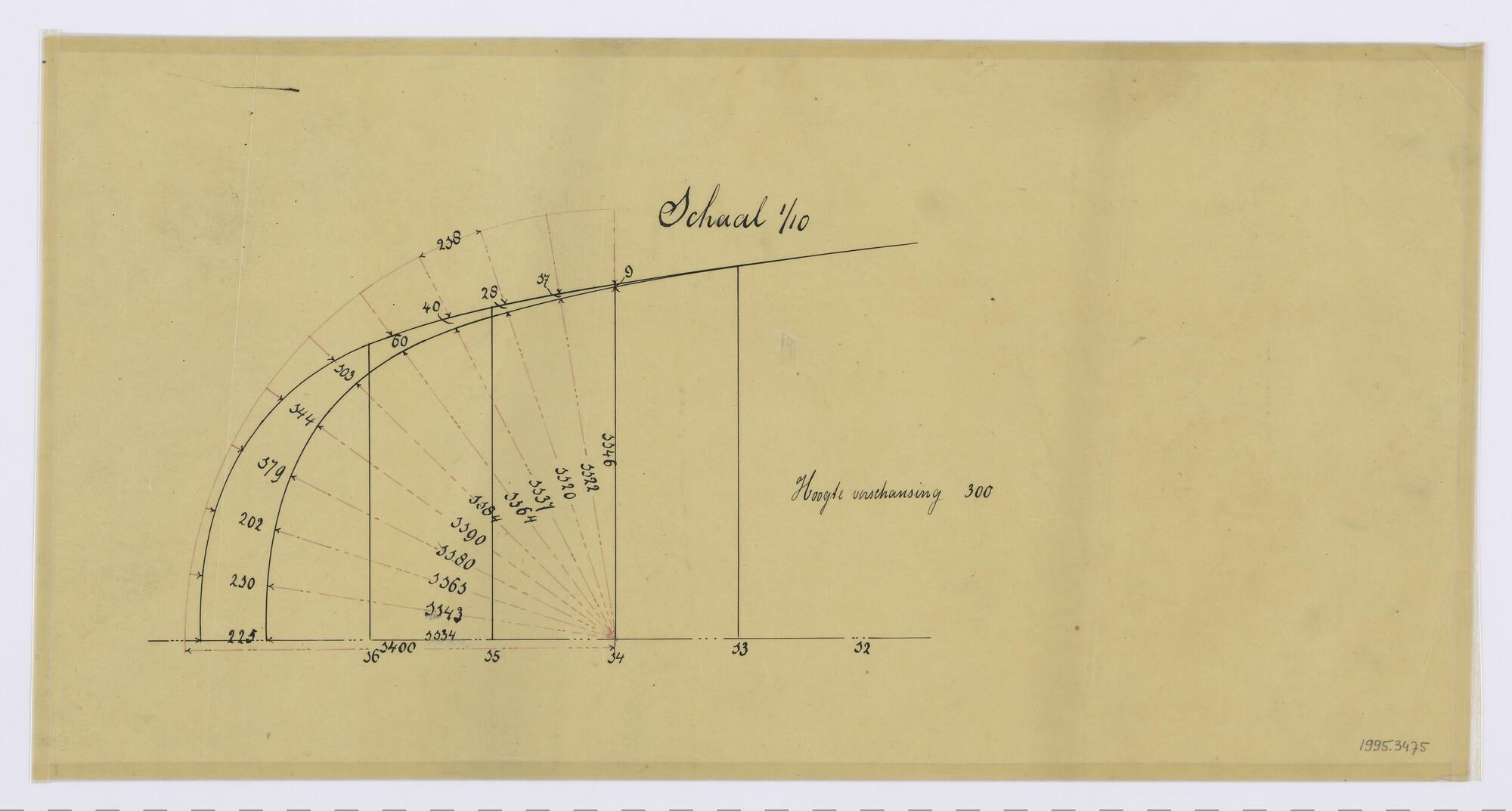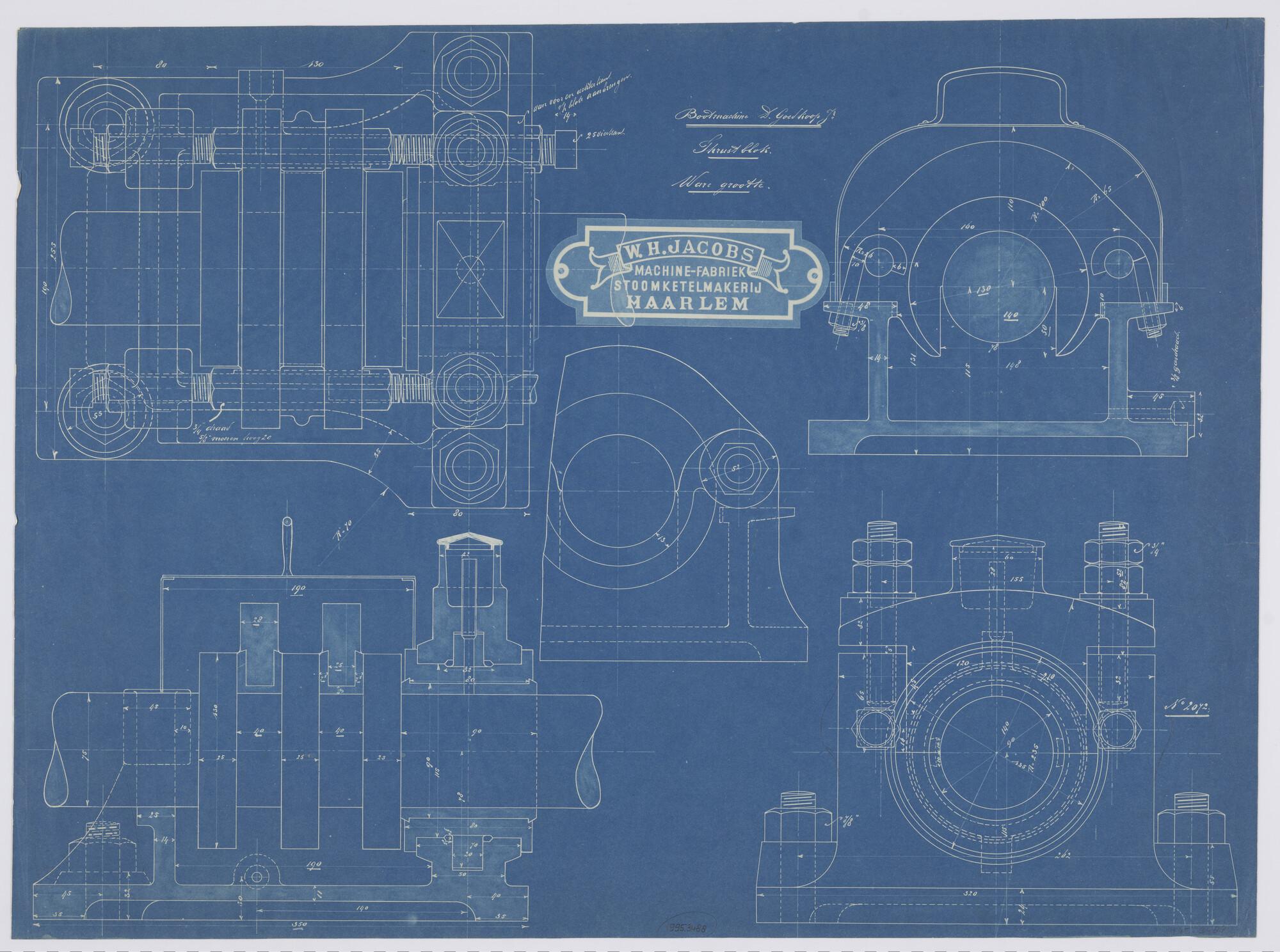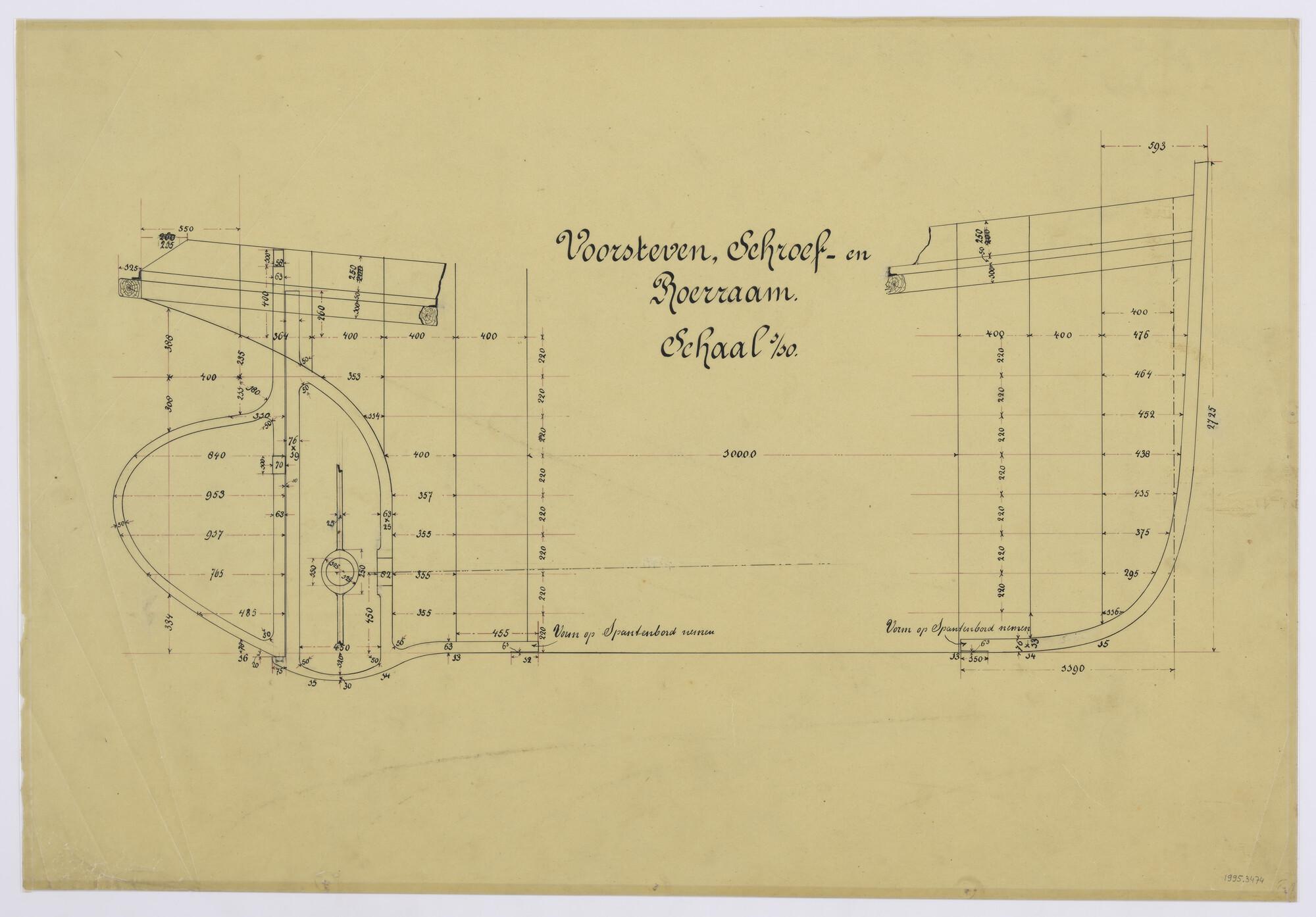 Maatschets van knoop in schroefraam van stoomsleepbo...
