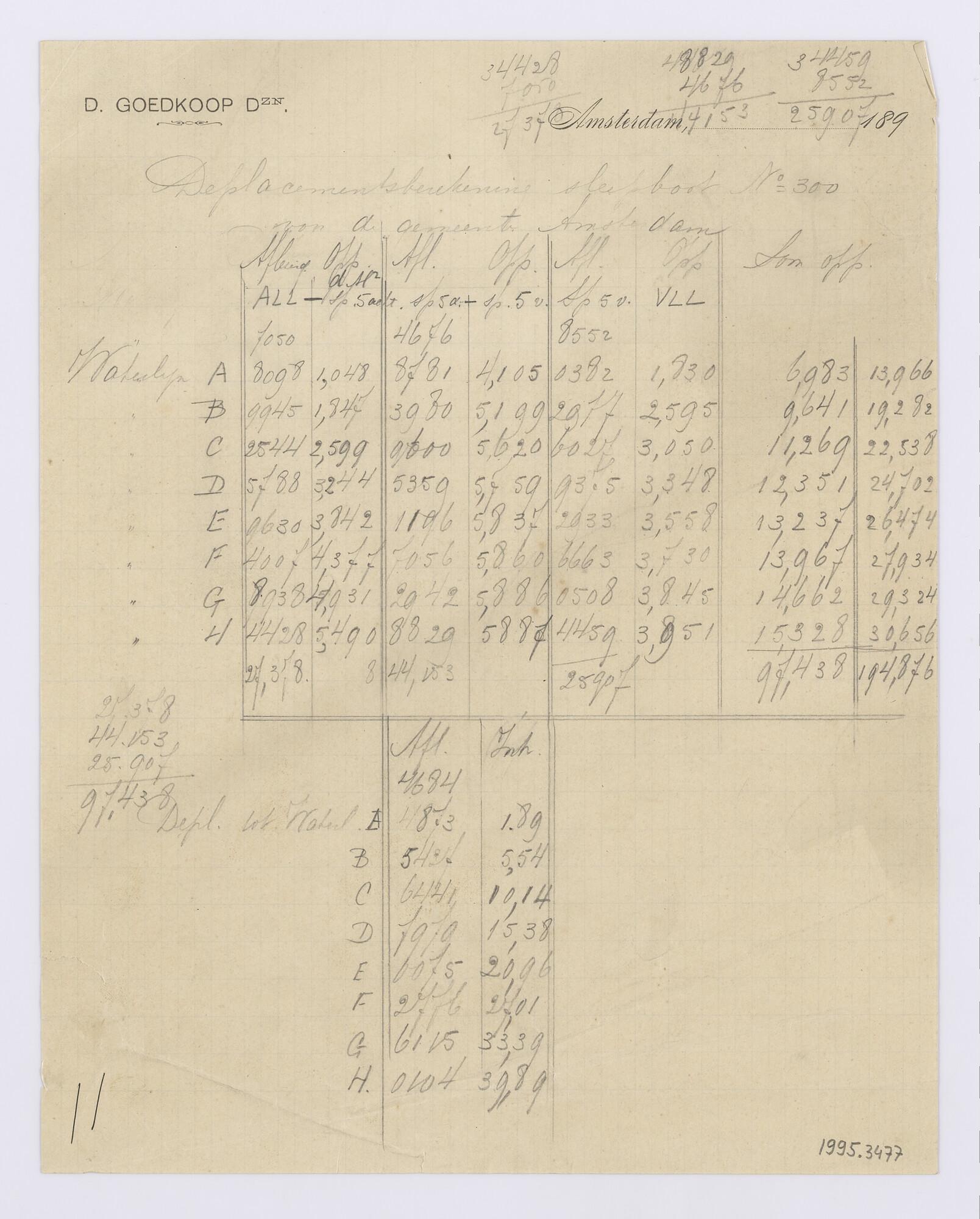 Berekening waterverplaatsing van het vrachtschip ss....