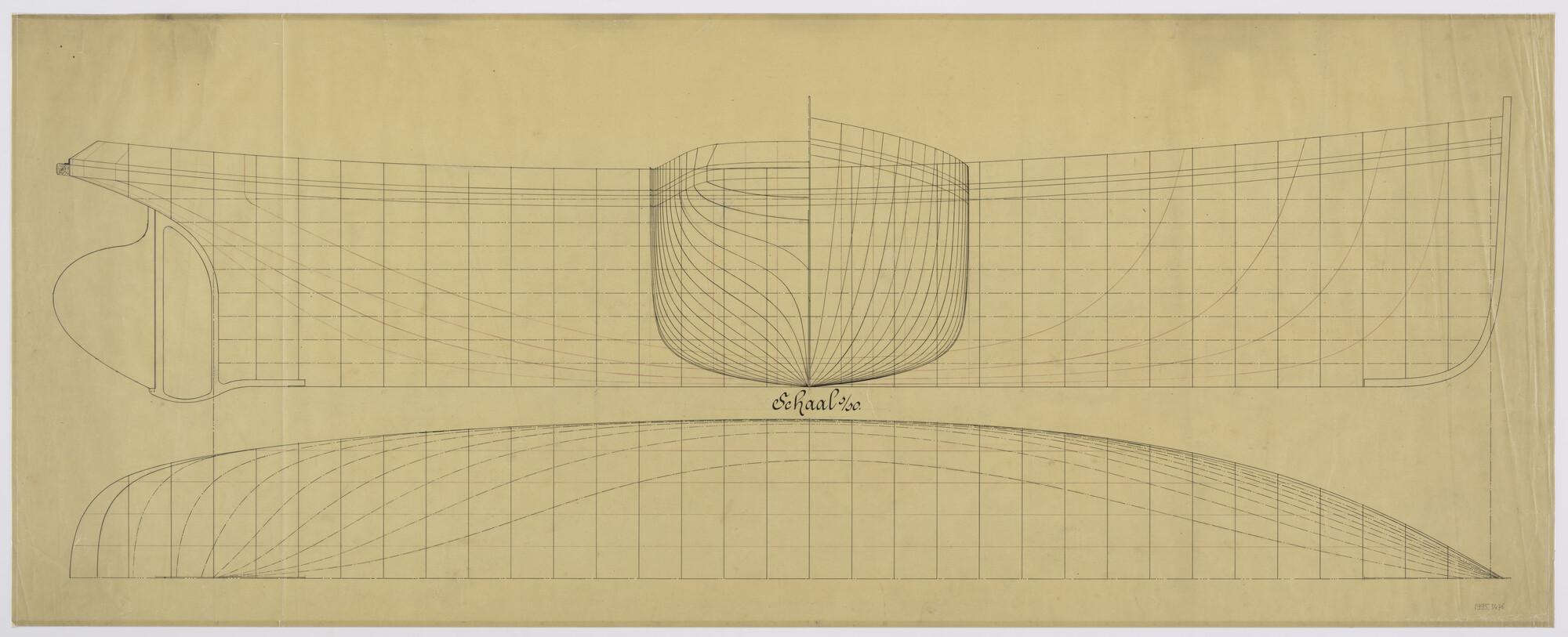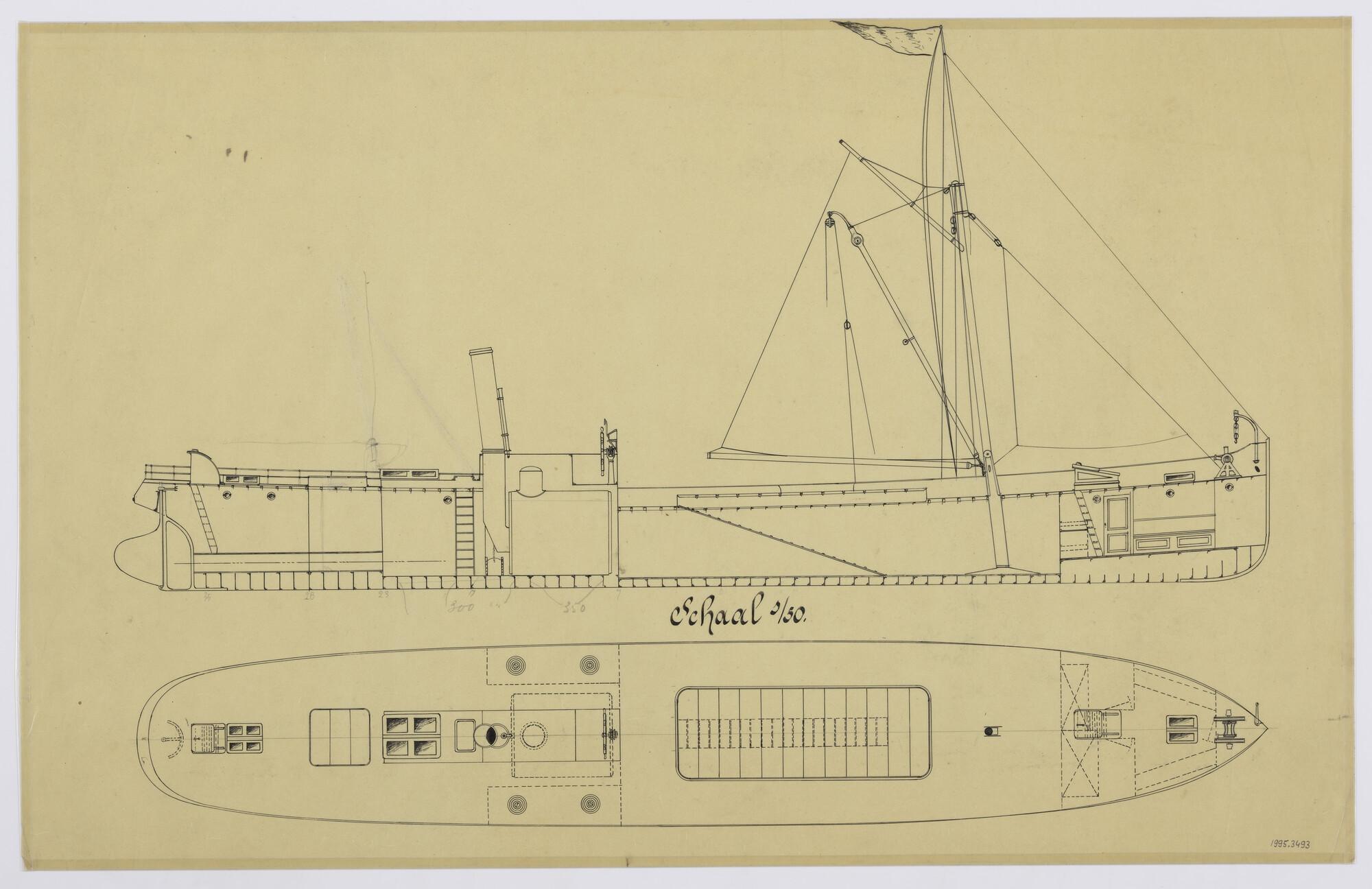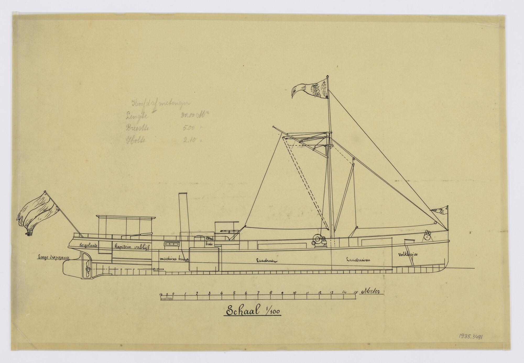 Lijnenplan van een stoomsleepboot voor de magazijndi...
