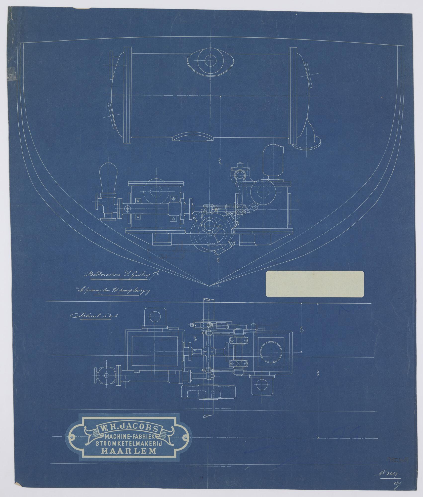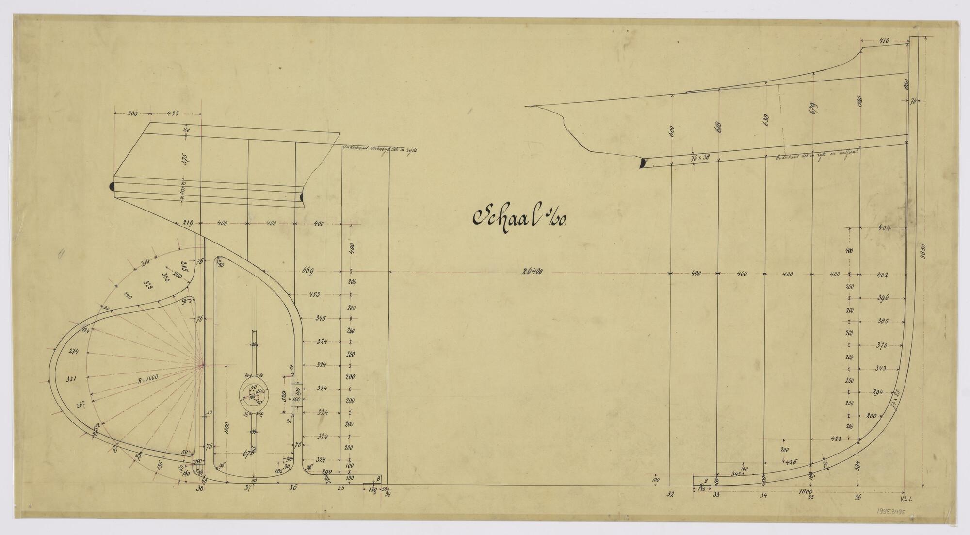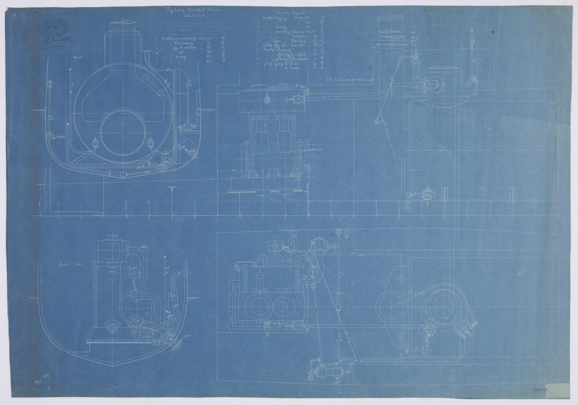 Lijnenplan van een stoomsleepboot voor de magazijndi...