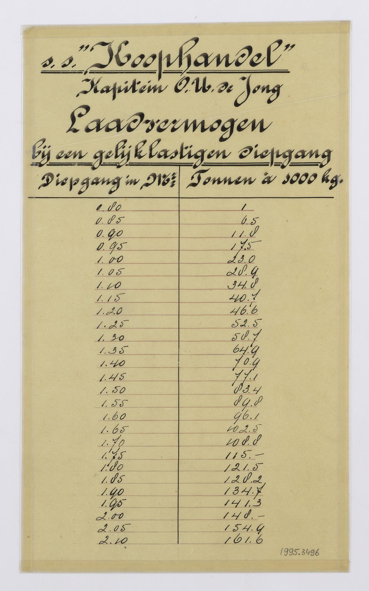 Schaal van laadvermogen van het vrachtschip ss. 'Dok...