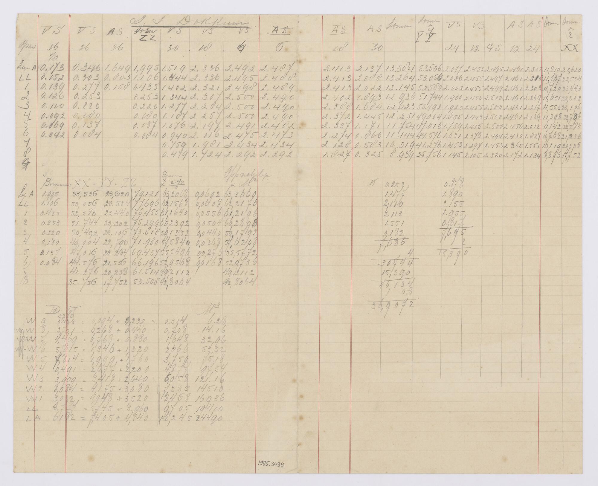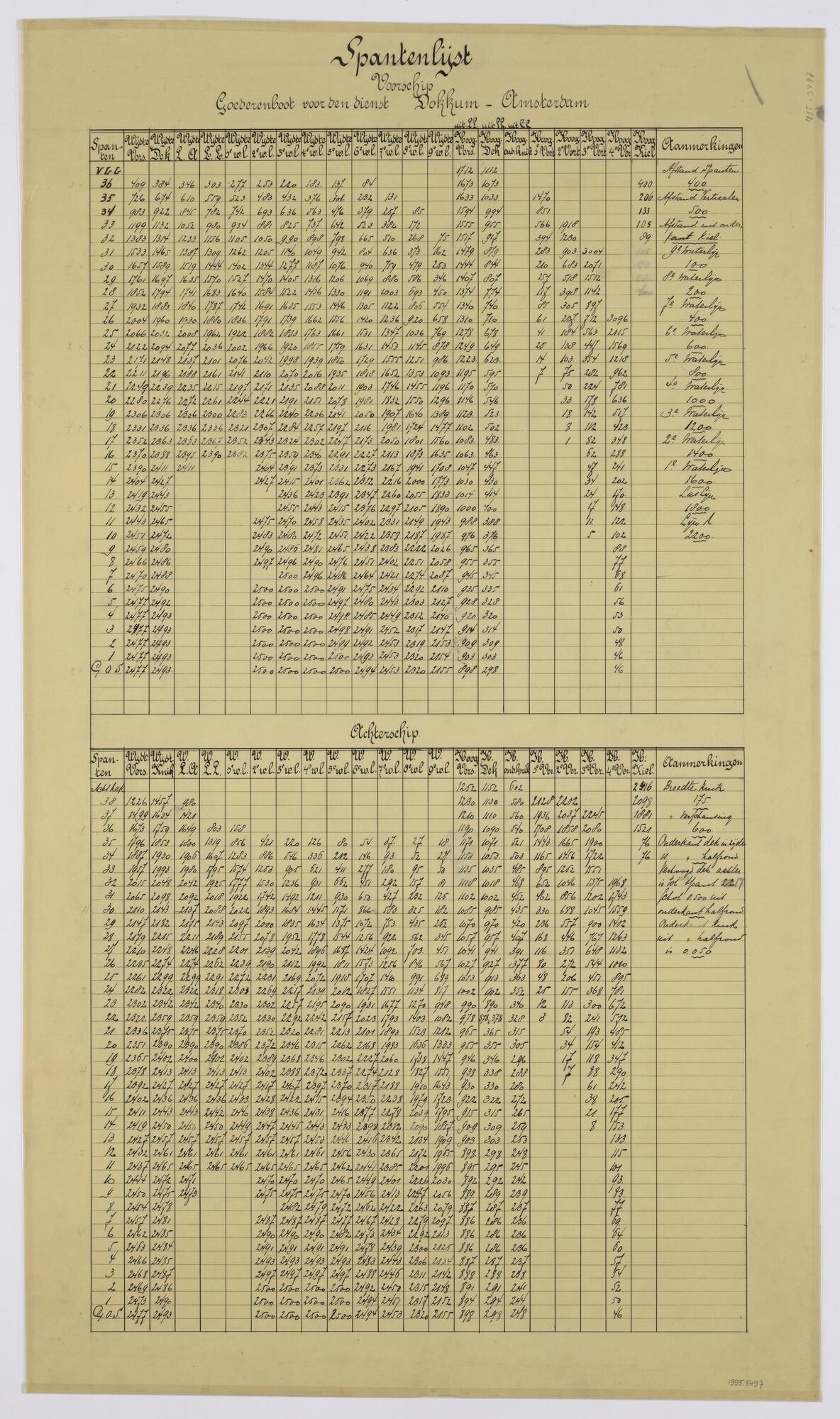 Spantenlijst van het vrachtschip ss. 'Dokkum'