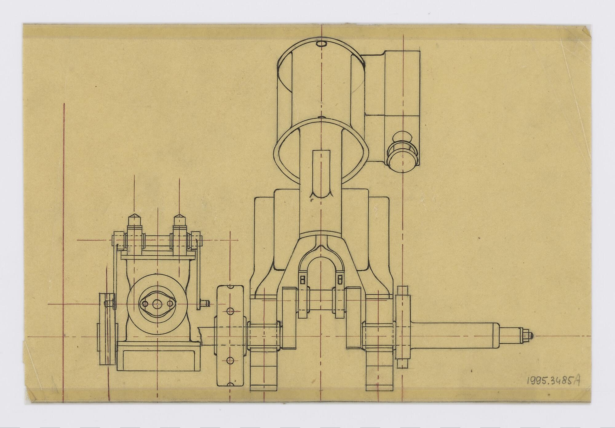Bovenaanzicht hoofdmachine van stoomsleepboot voor d...