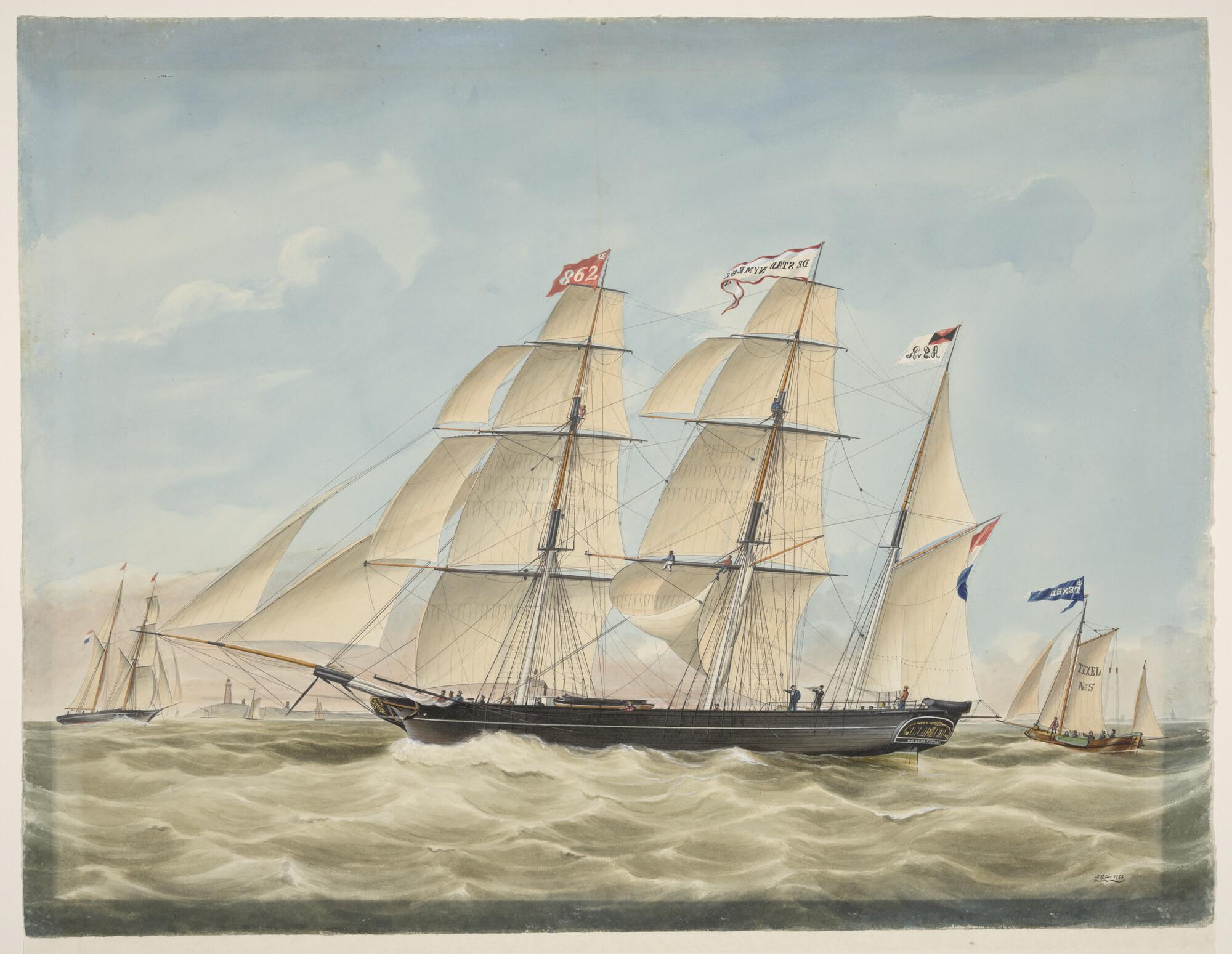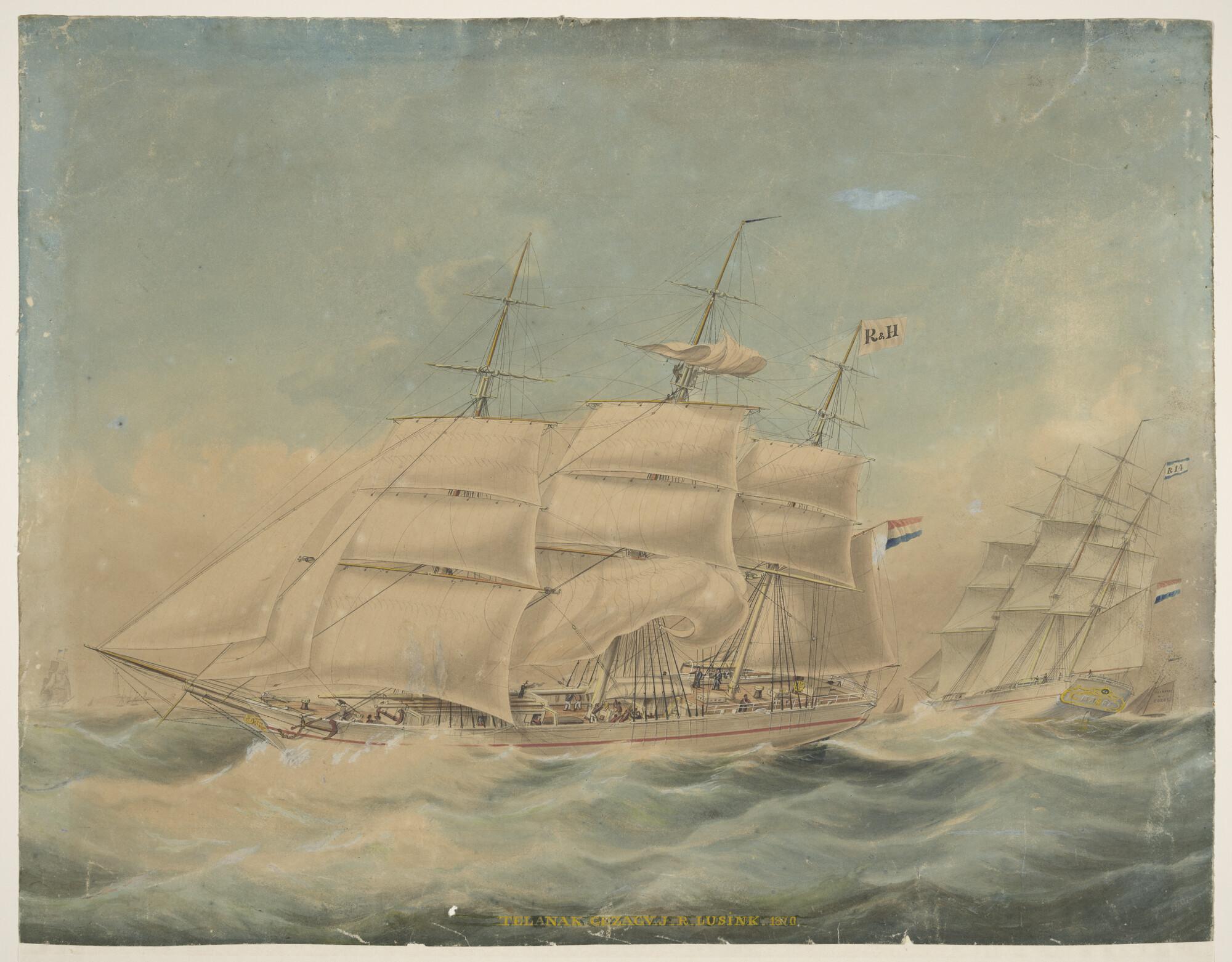 Het Engelse korvet 'Fly' op de rede van Sidney