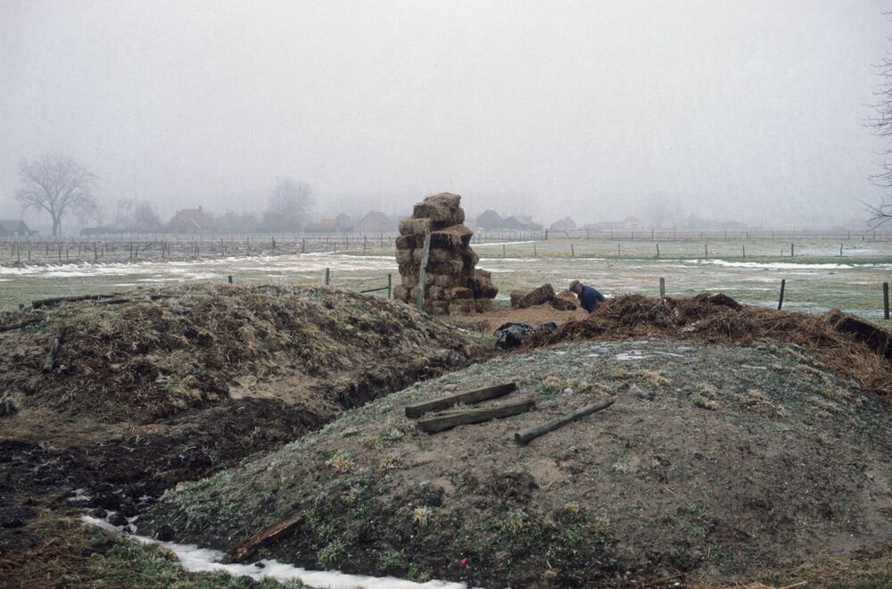Een boer aan het werk in het buitengebied van Hierden