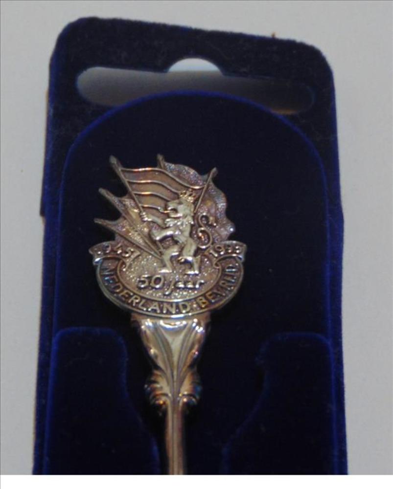 Theelepeltje, herinneringslepeltje, zilver, met daar...