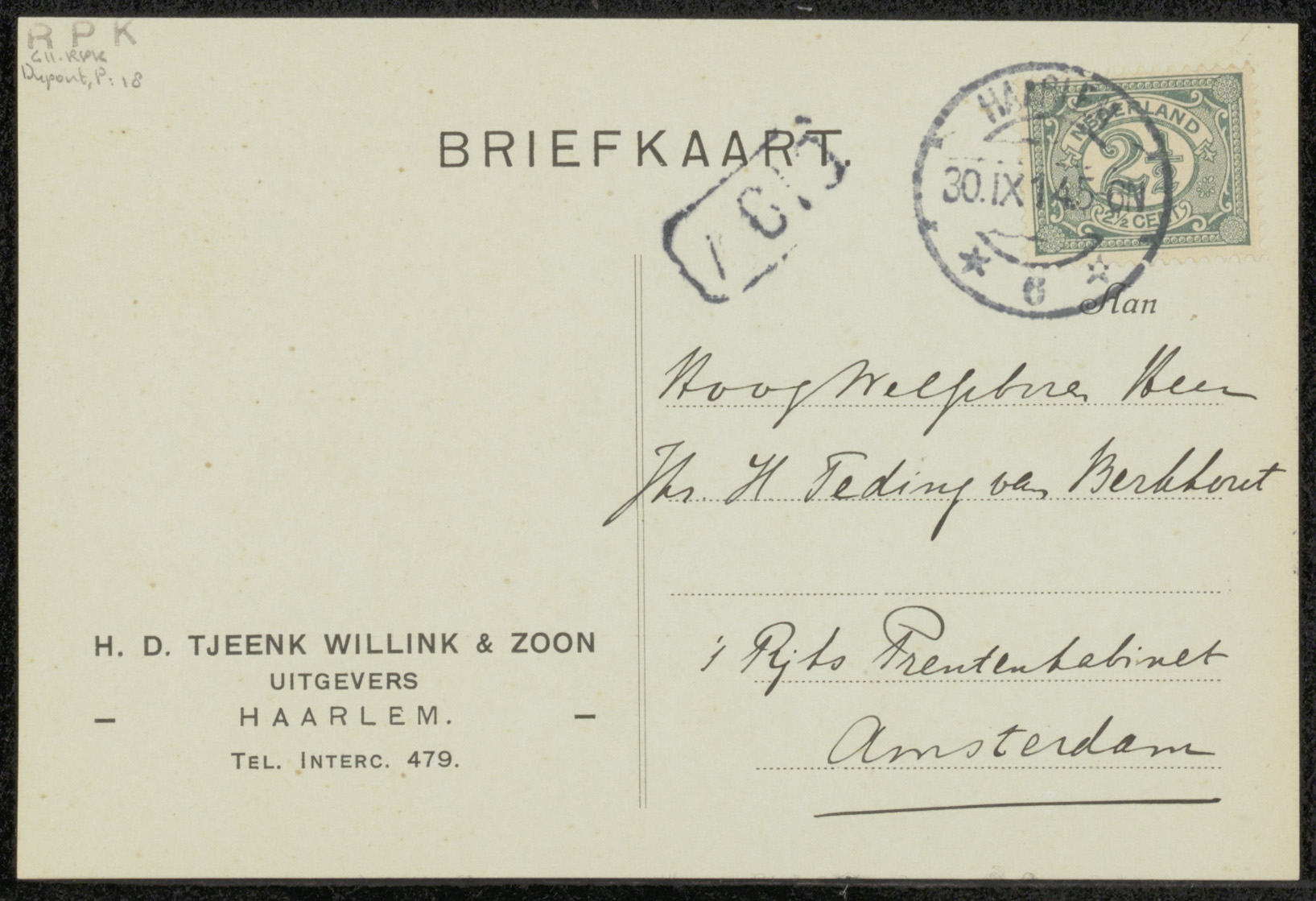 Briefkaart aan jonkheer Hendrik Teding van Berkhout ...