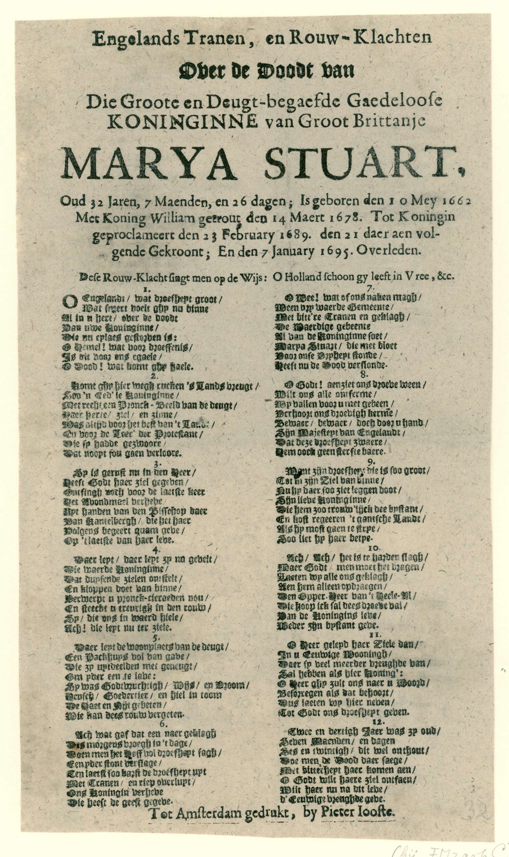 Treurlied op het overlijden van koningin Maria Stuar...