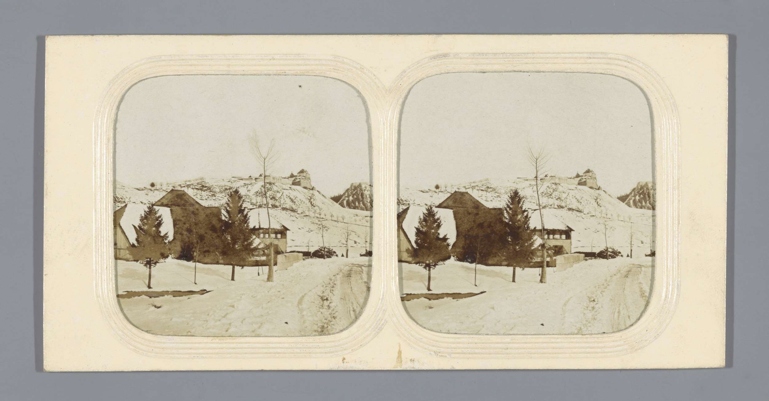 Boerderij in de sneeuw in Pontarlier, Frankrijk