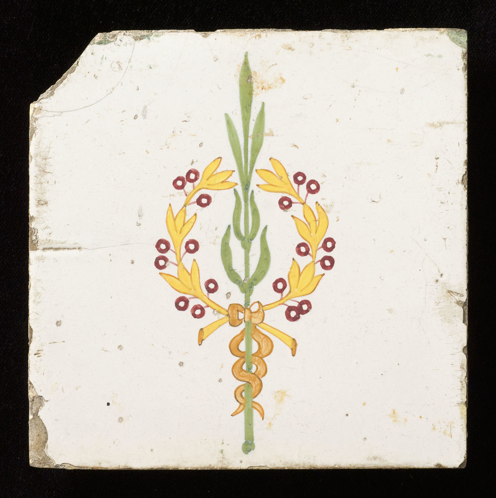 Tegel van aardewerk met tinglazuur voorstellende een...