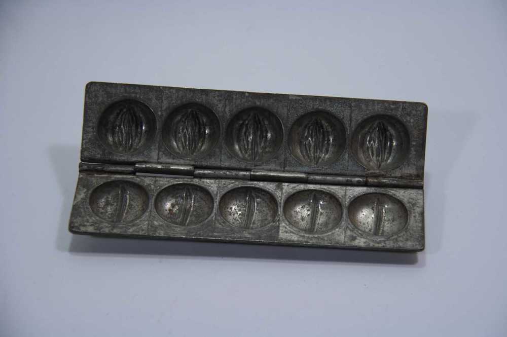 Chocoladevorm van metaal voor 5 pruimen uit de 20e eeuw