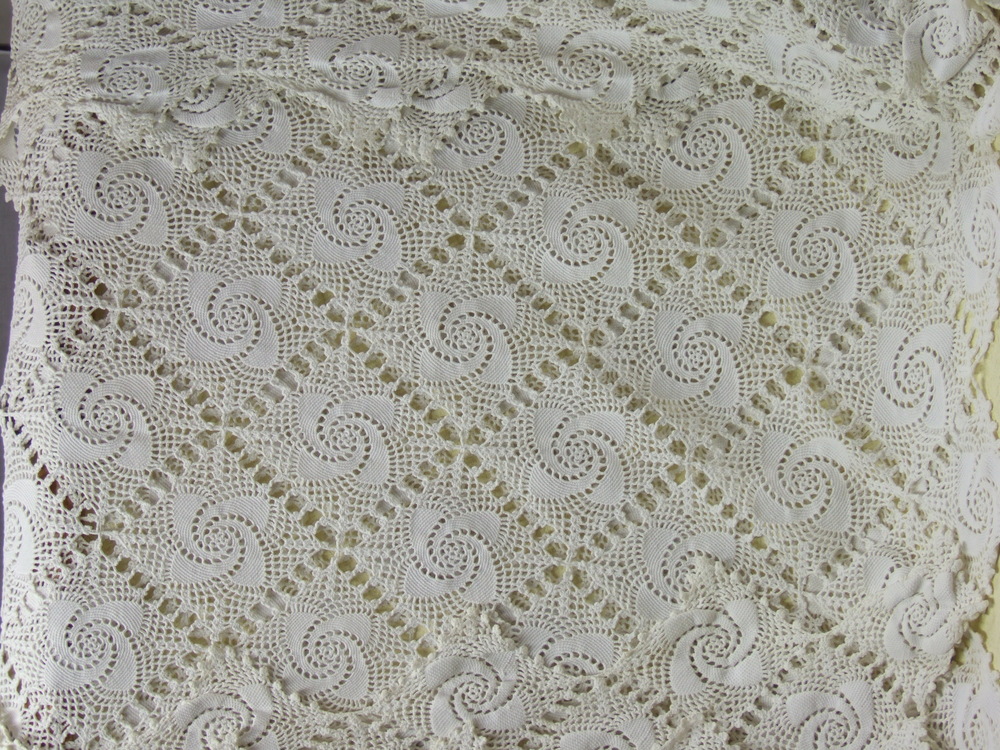 Bedsprei van gehaakte witte katoengaren.
