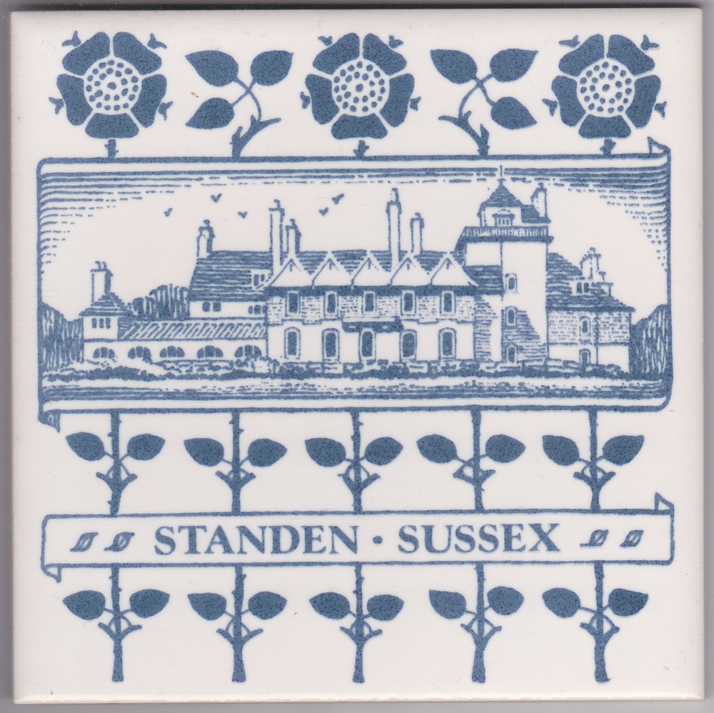 Tegel in zeefdruk, met voorstelling: Standen - Susse...