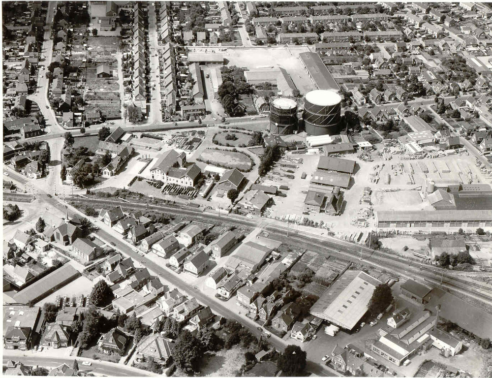 Panorama van gasfabriek en omgeving