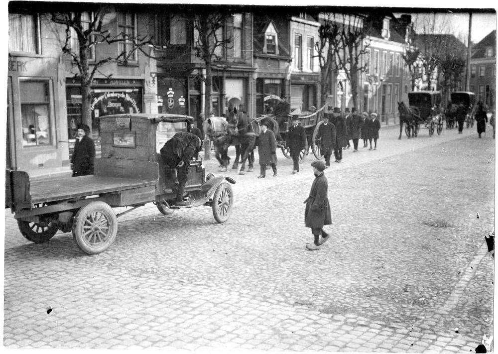 Foto, voorstellende begrafenis, Varkensmarkt te Cule...