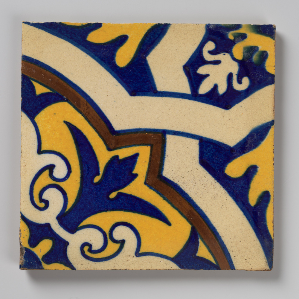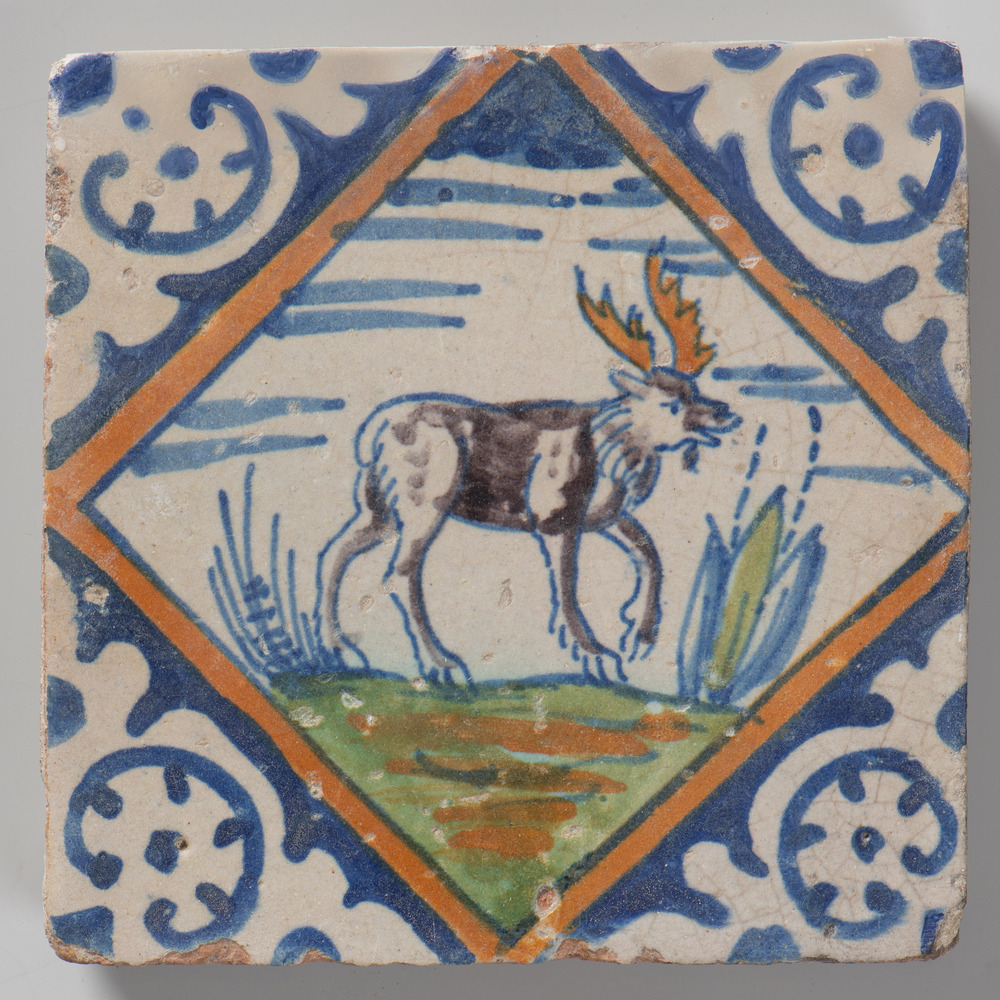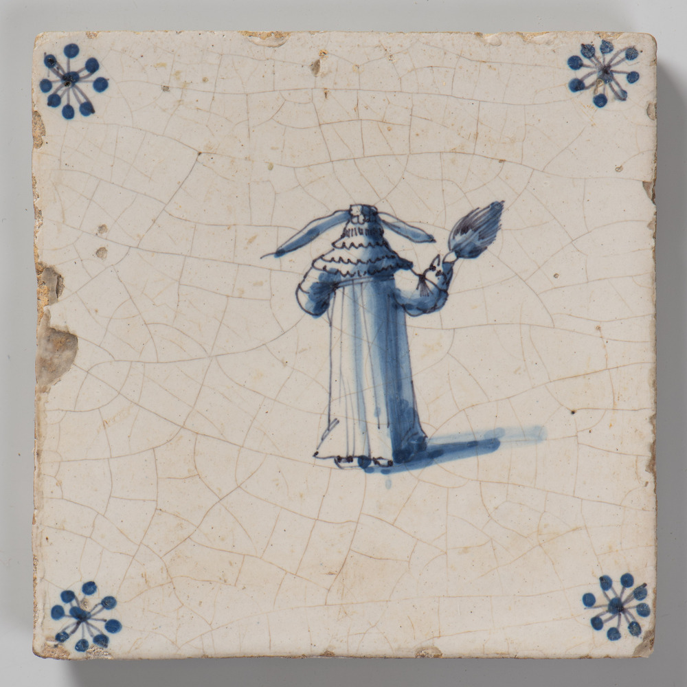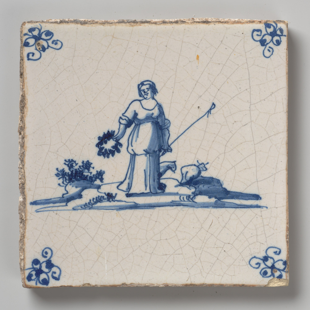 tegel van keramiek met tinglazuur, voorstellende: De...