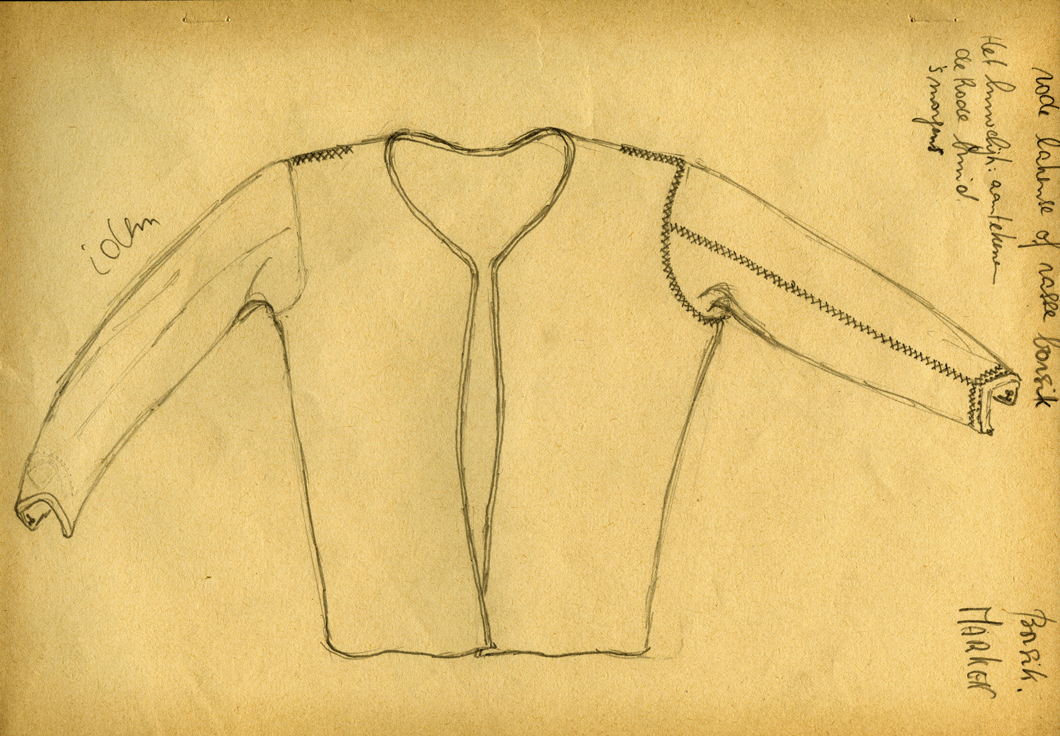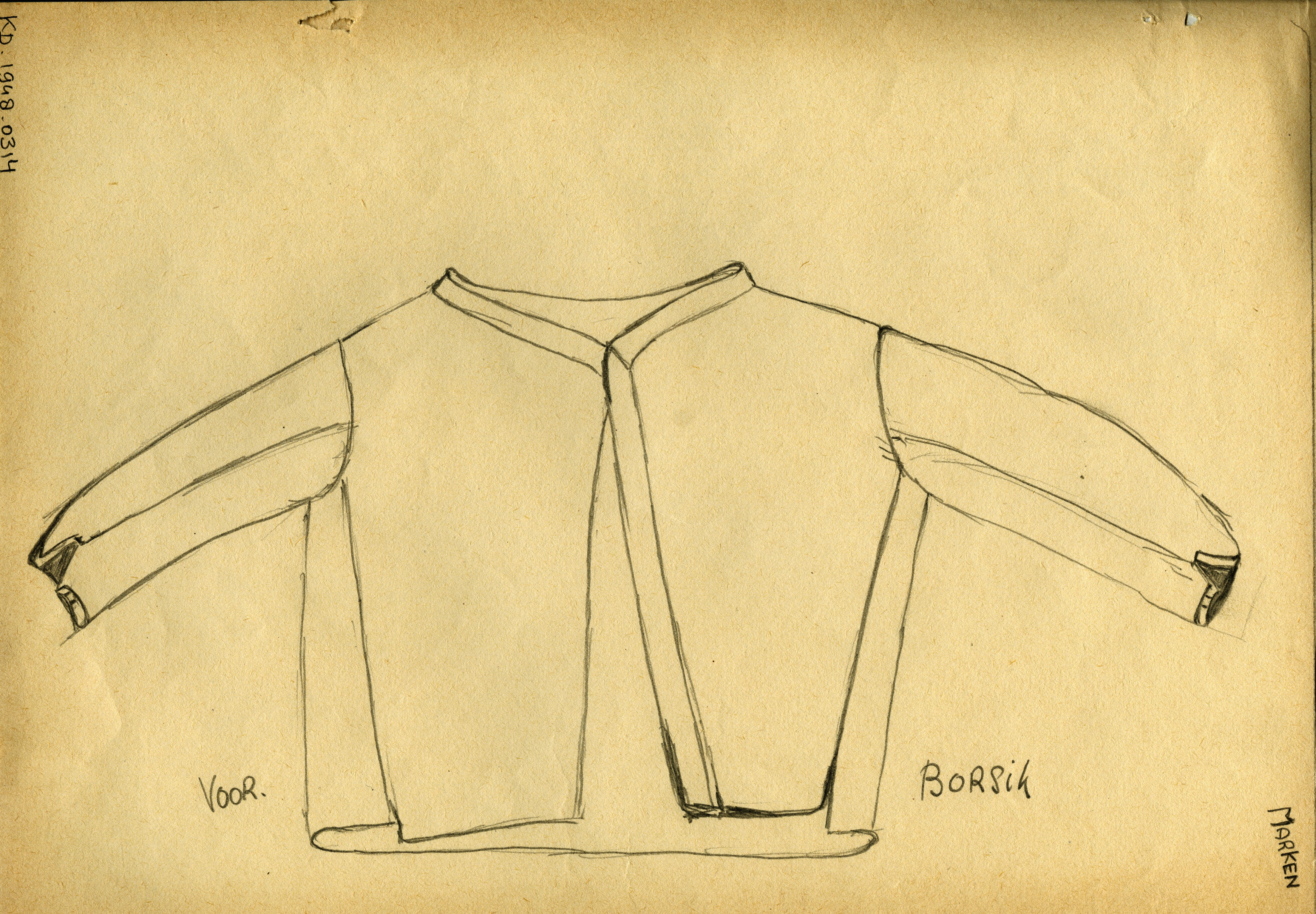 Tekening van voorpanden, steekmouwen en een borstlap...