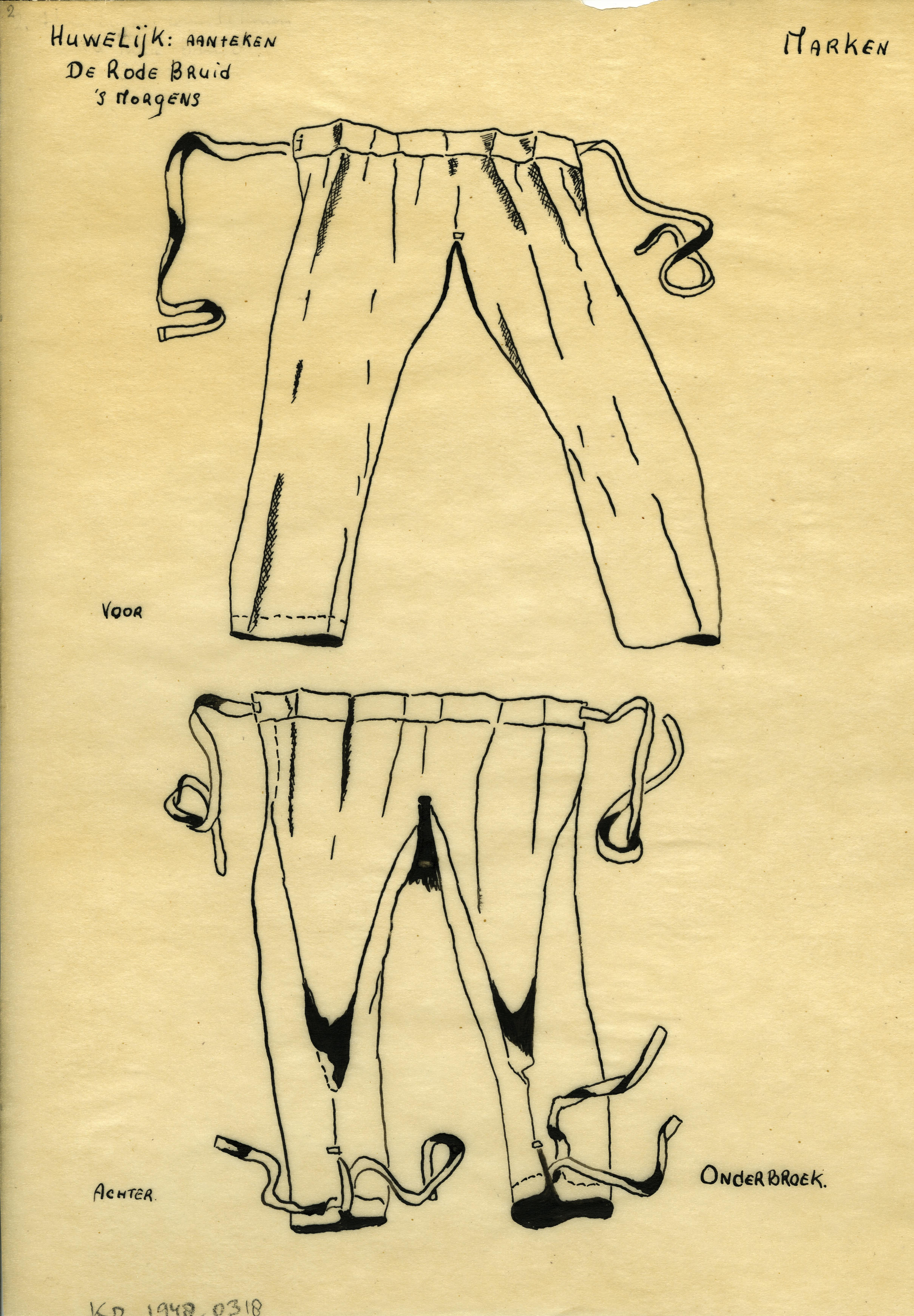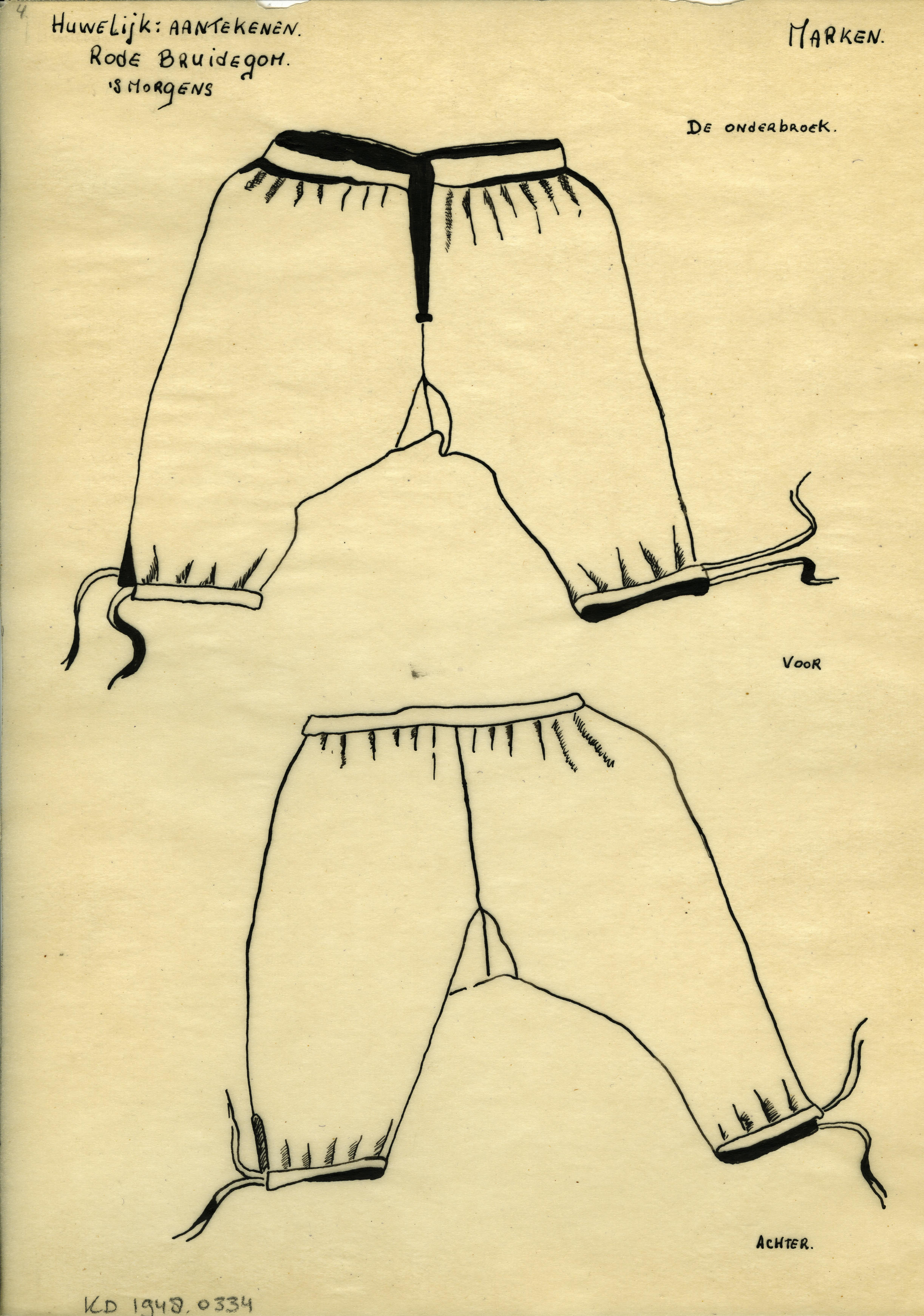 Tekening van een bruidegomsbroek, Marken (patroontek...