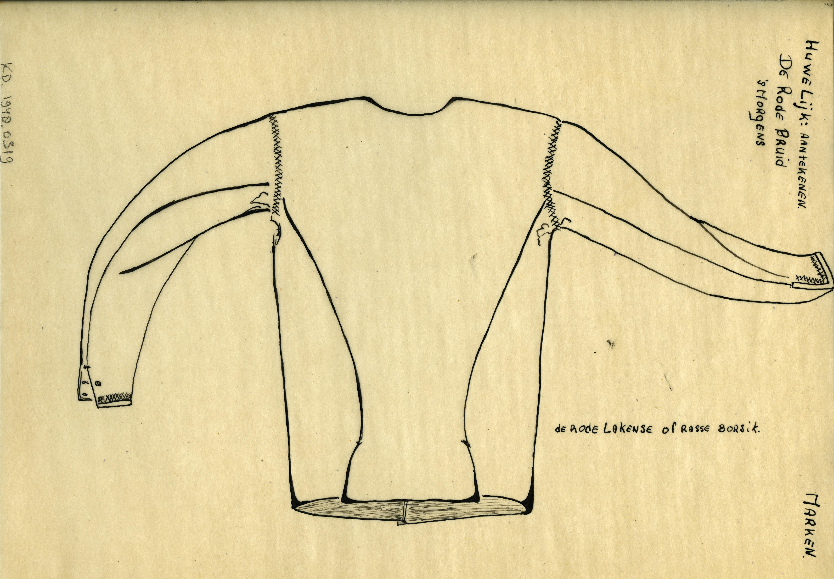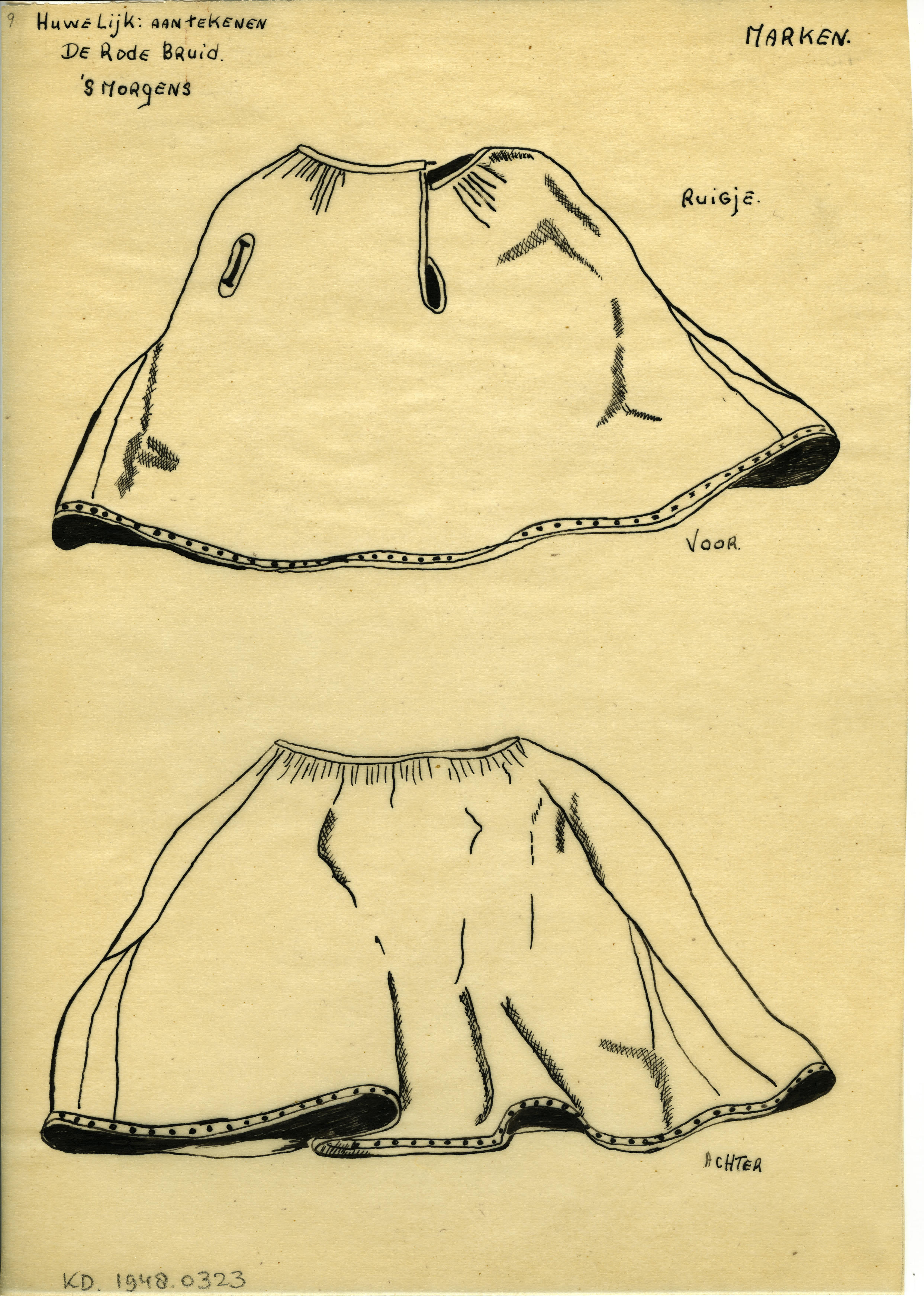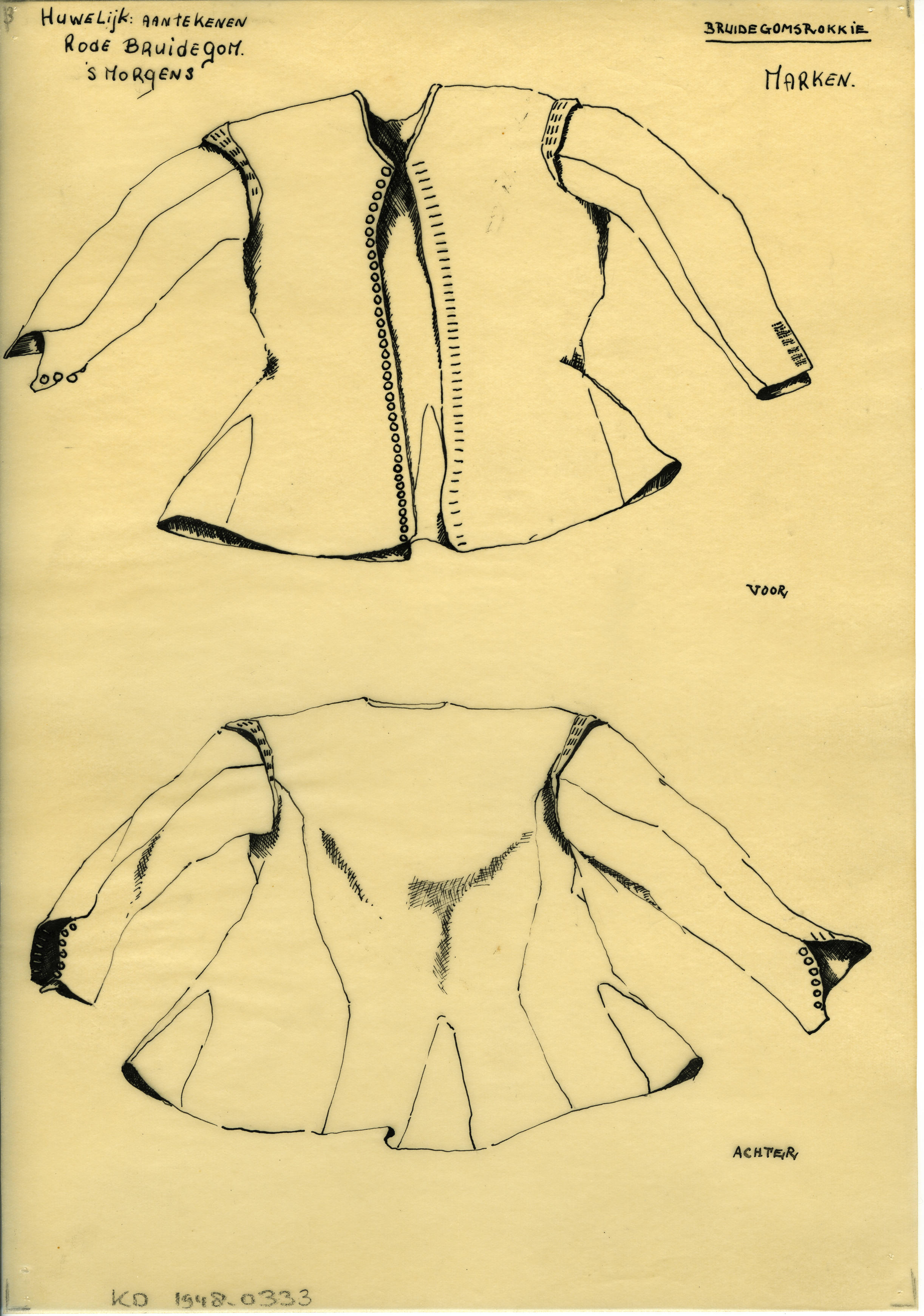 Tekening van een 'bruidegomsrokkie', Marken (patroon...