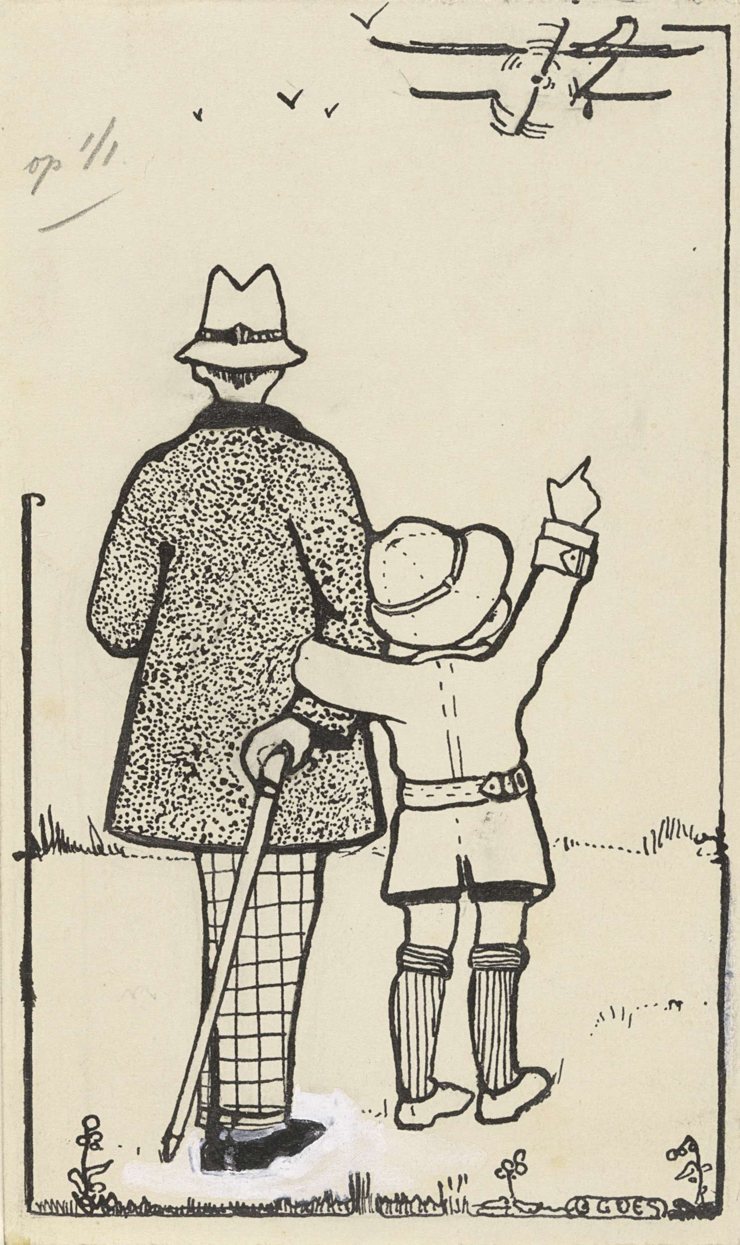 Man en jongen kijkend naar een vliegtuig