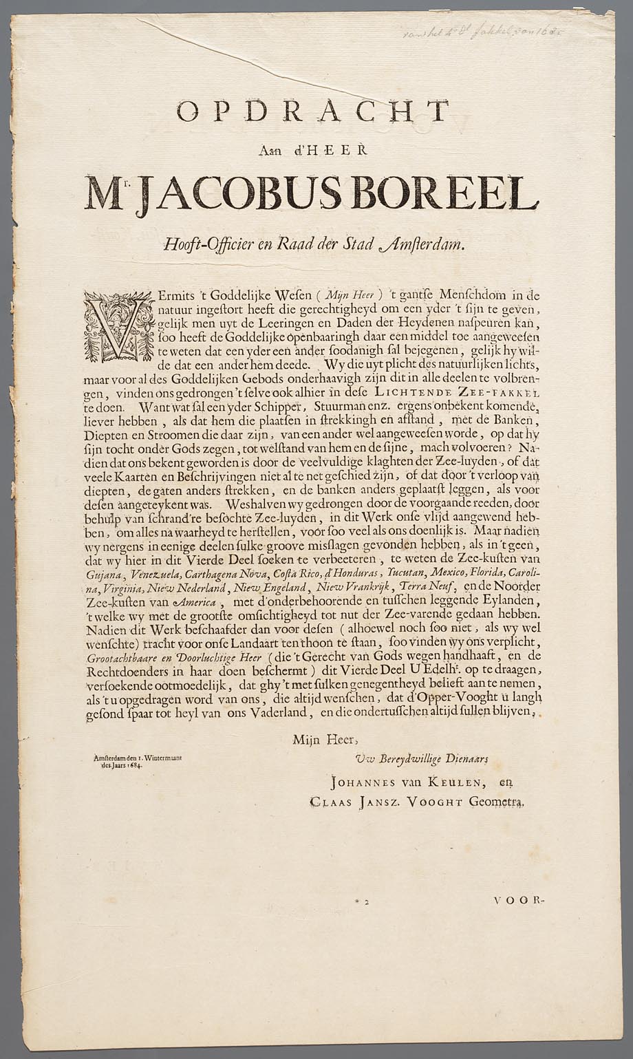 Opdracht aan d´heer mr Jacobus Boreel