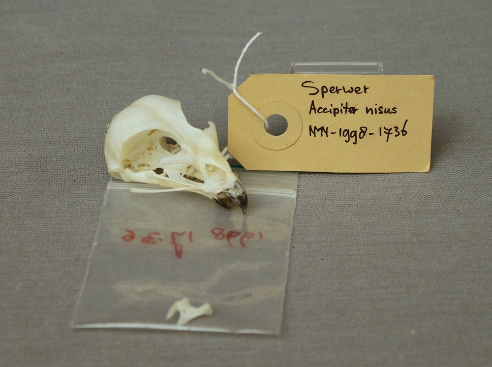 Sperwer; schedel met ondersnavel; rechter articulare...