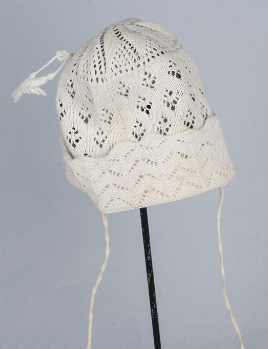 Slaapmuts van gebreid katoen, ajour, onderdeel van g...