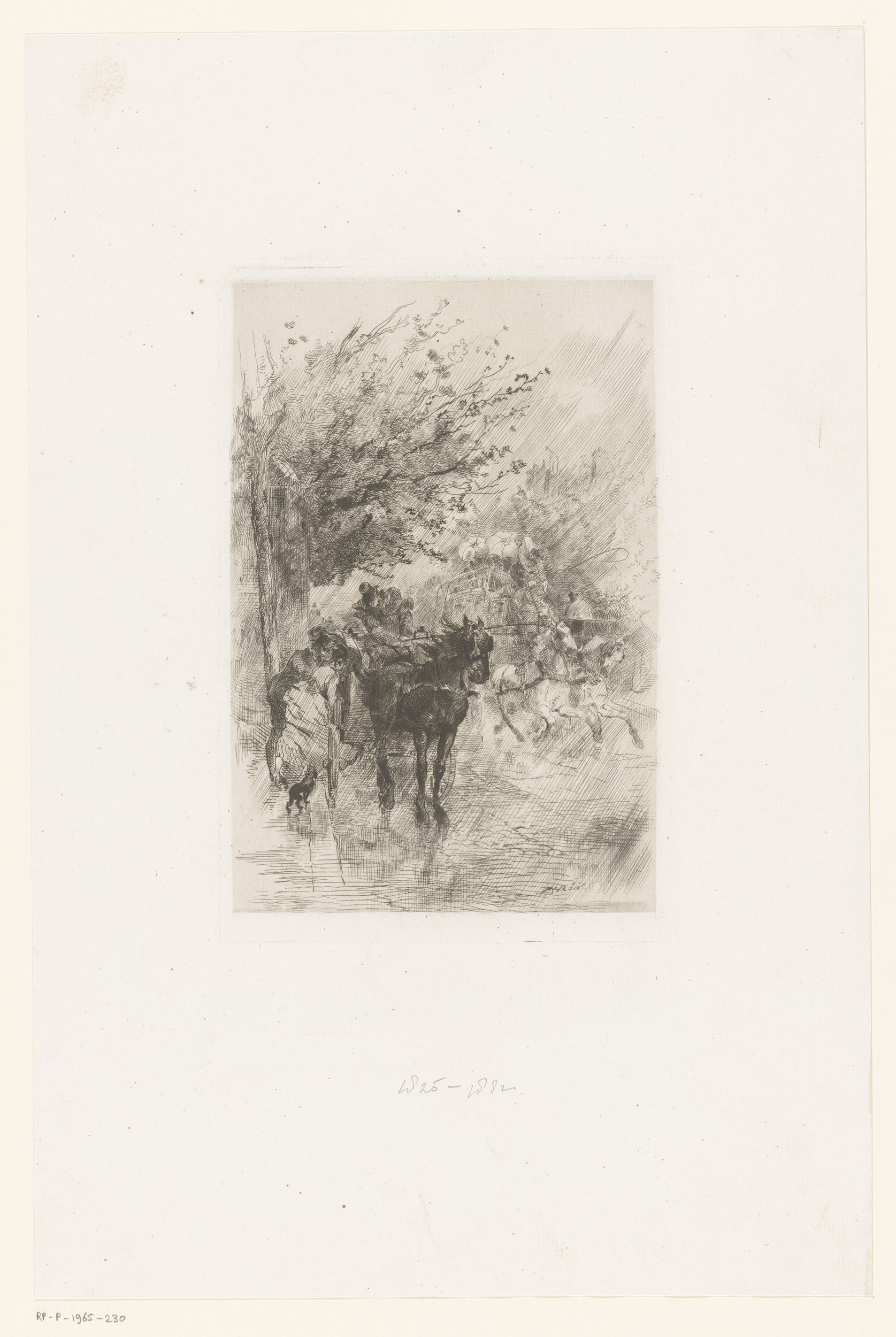 Boulevard met een man en vrouw bij een rijtuig op ee...