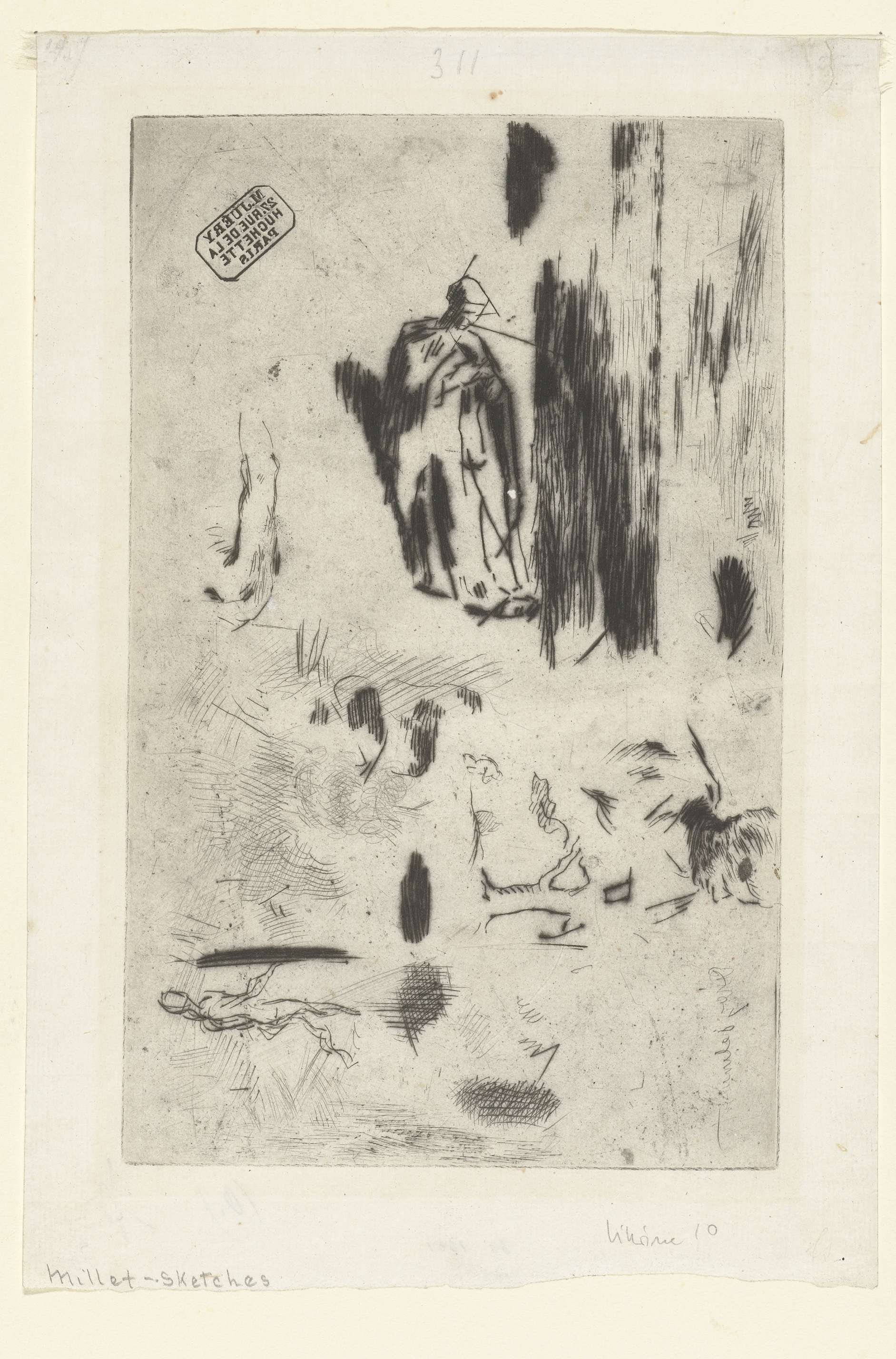 Schetsblad met enkele figuurstudies en landschap