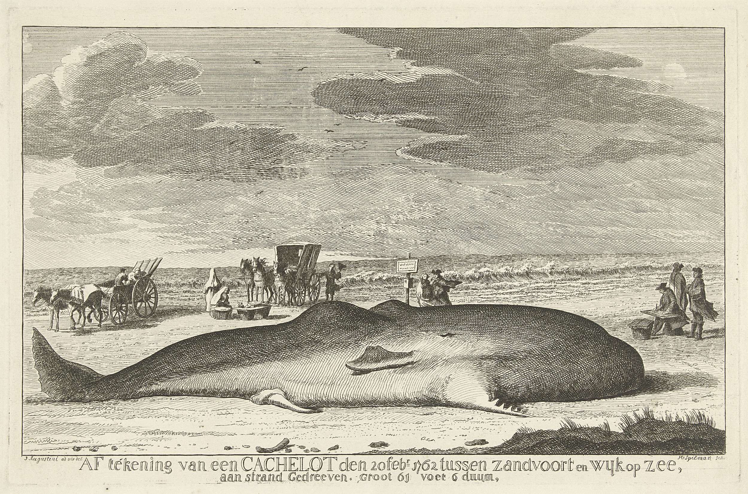 Walvis gestrand tussen Zandvoort en Wijk aan Zee, 1762