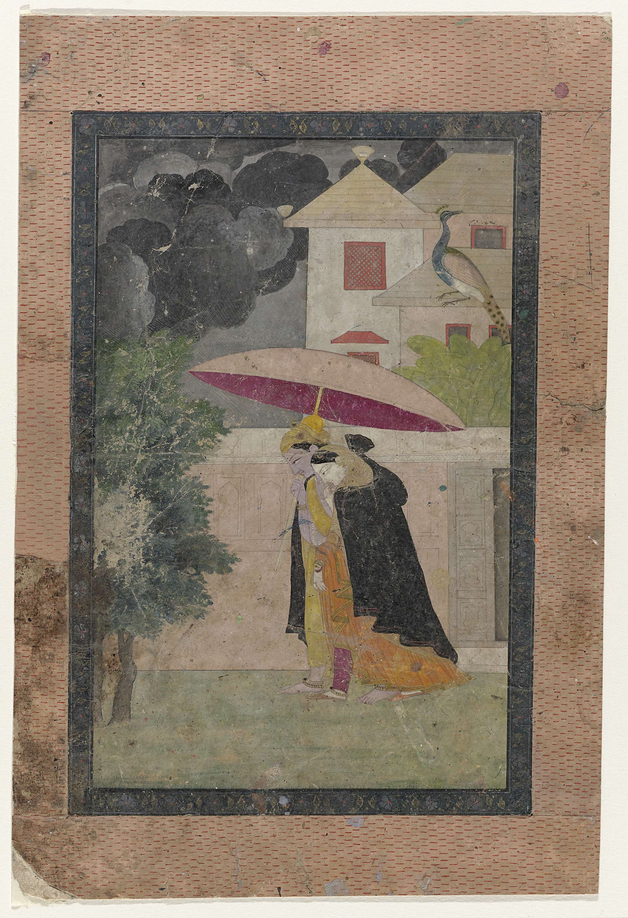 Prins en zijn geliefde (Krishna en Raddha) vluchtend...