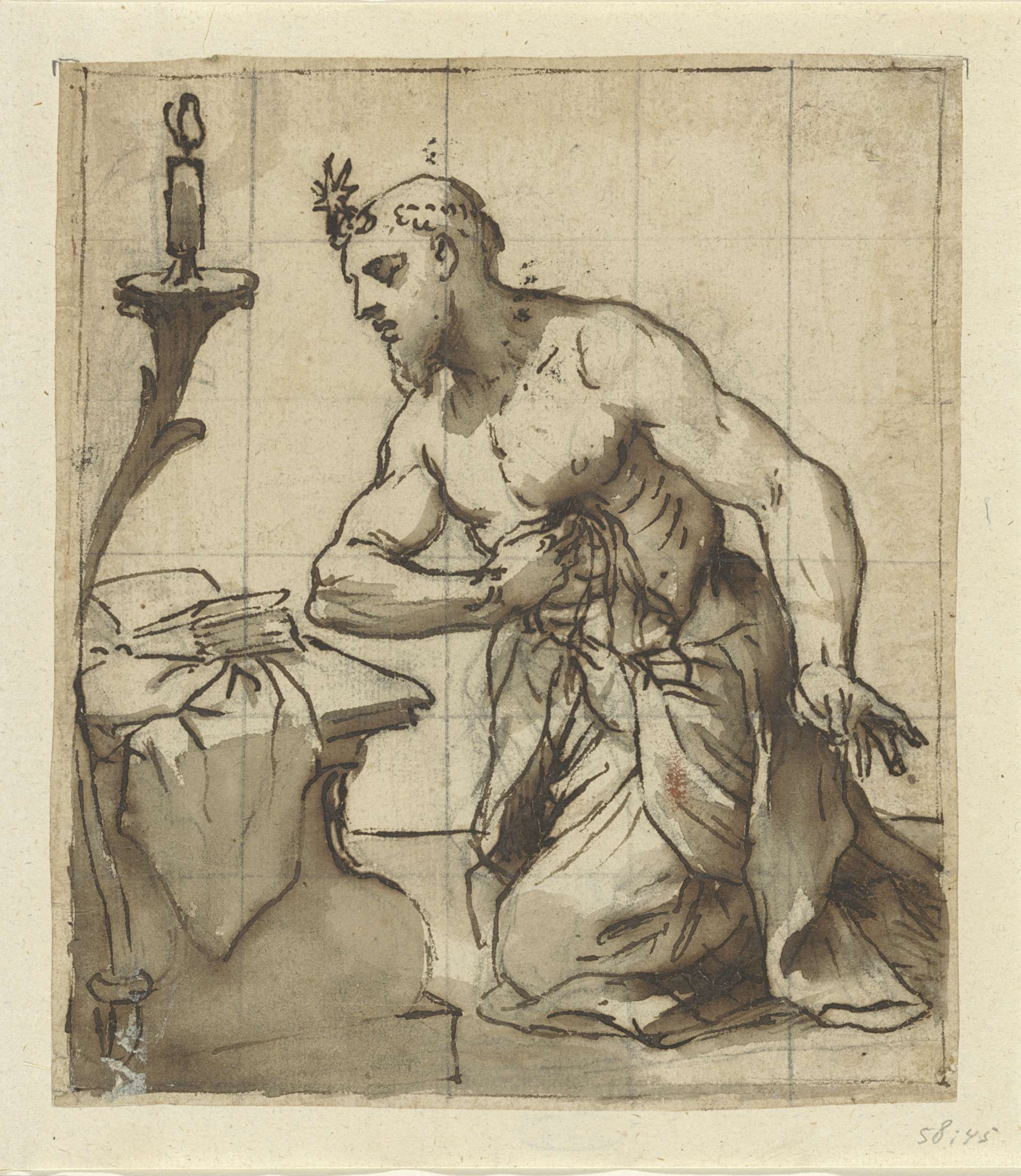 Studie van een knielende man