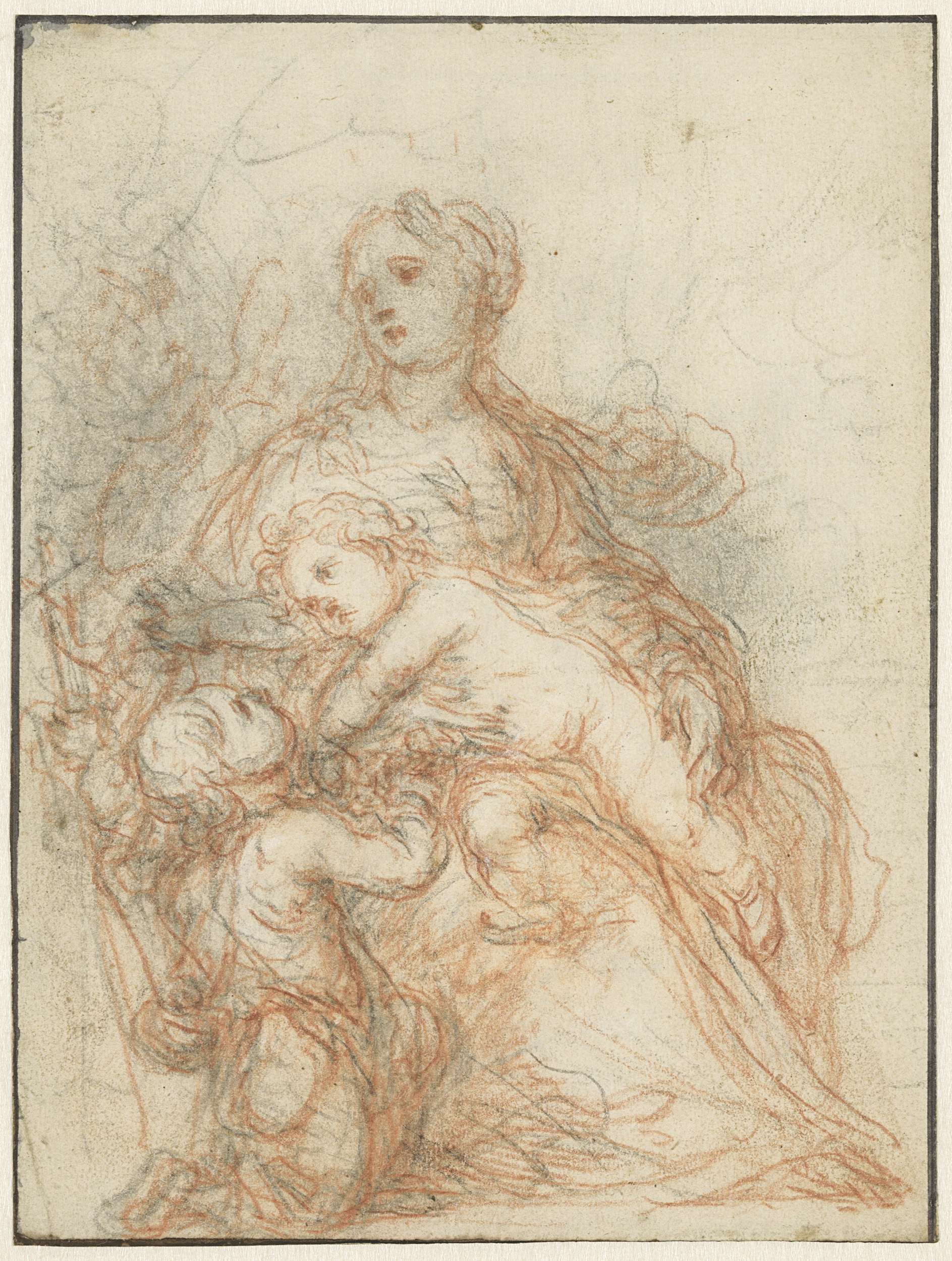 Zittende Madonna met Christuskind en de jonge Johannes