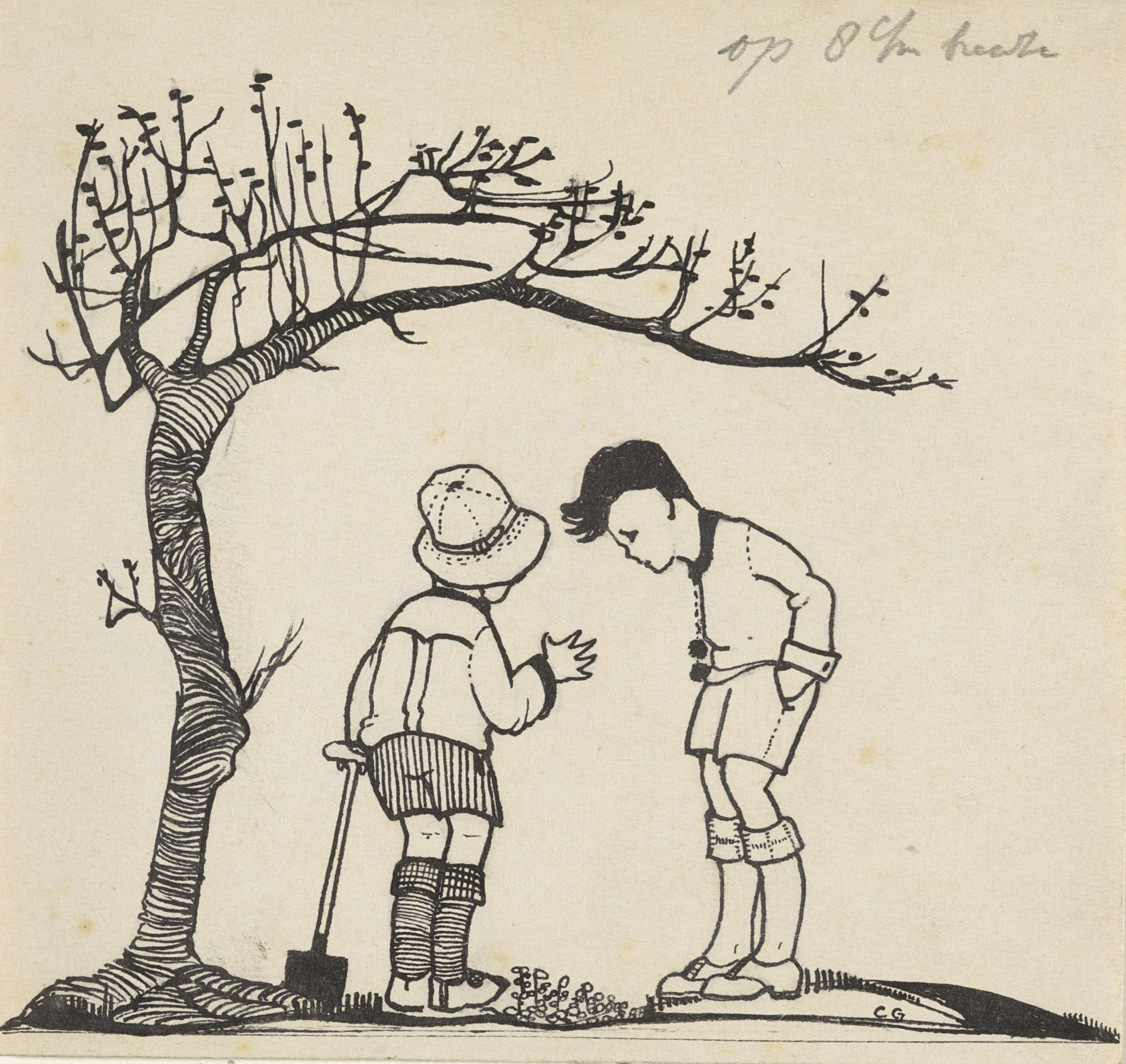 Twee jongens onder een boom