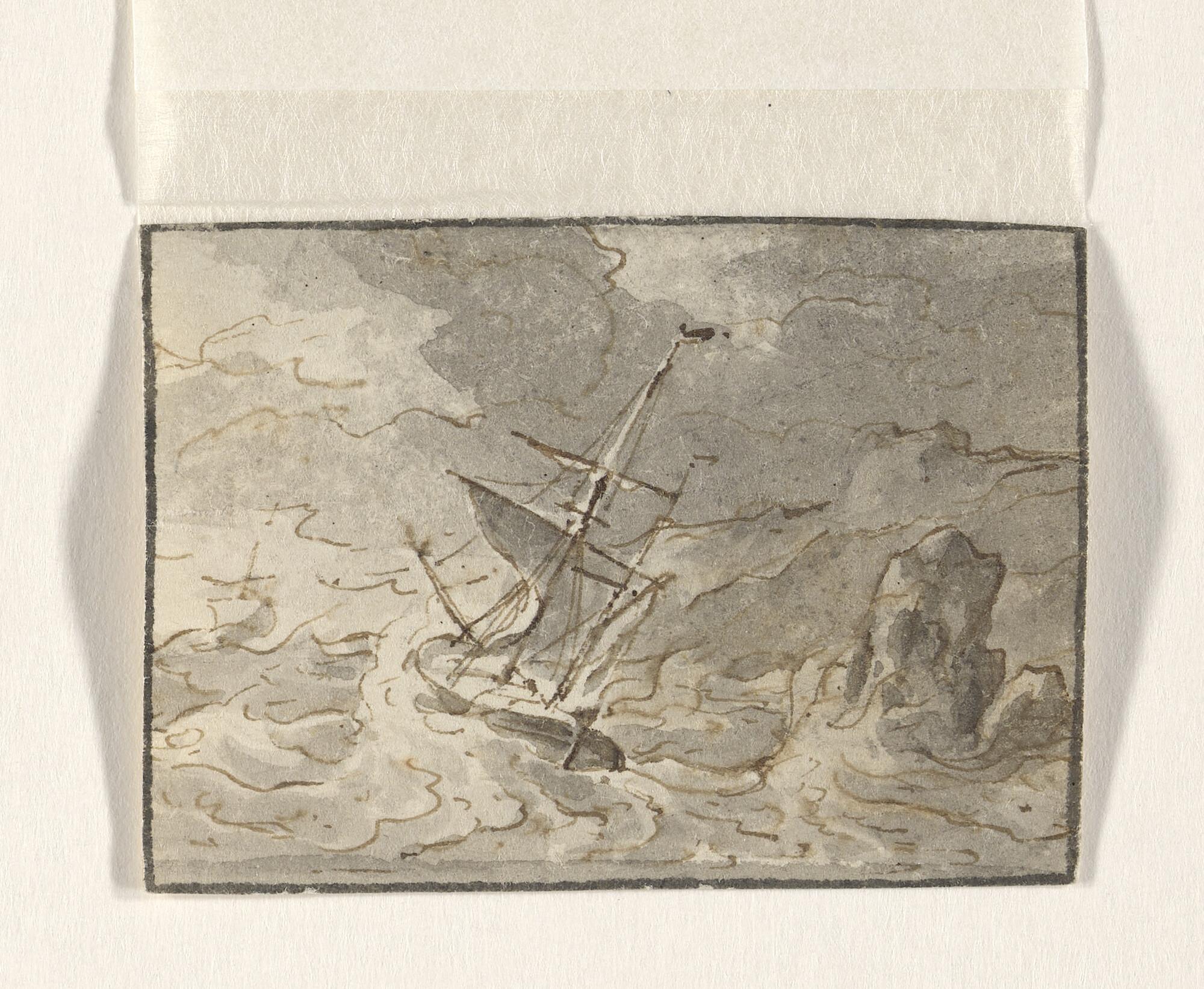 Een anderhalfmastschip in zwaar weer
