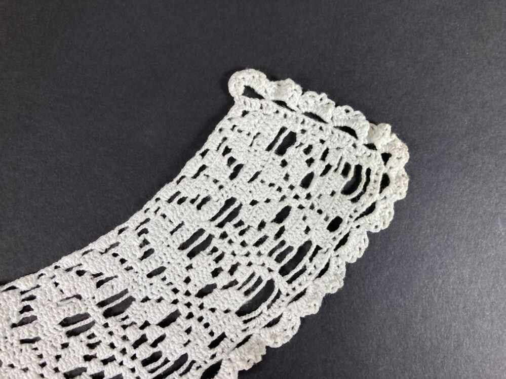 Paar wit katoenen polsmouwtjes, ajour gebreid, afgez...