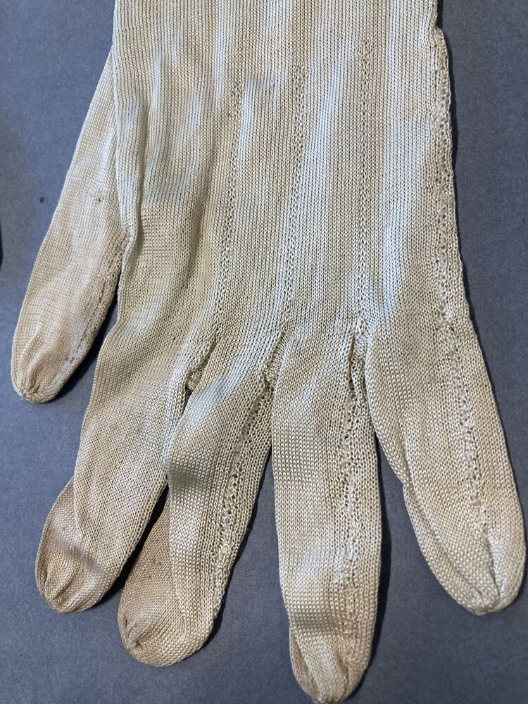 Paar dameshandschoenen van wit geribbeld katoen