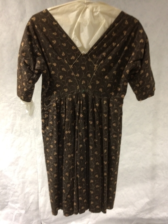Muts van bedrukte katoen, bruin met wit imitatie moiré