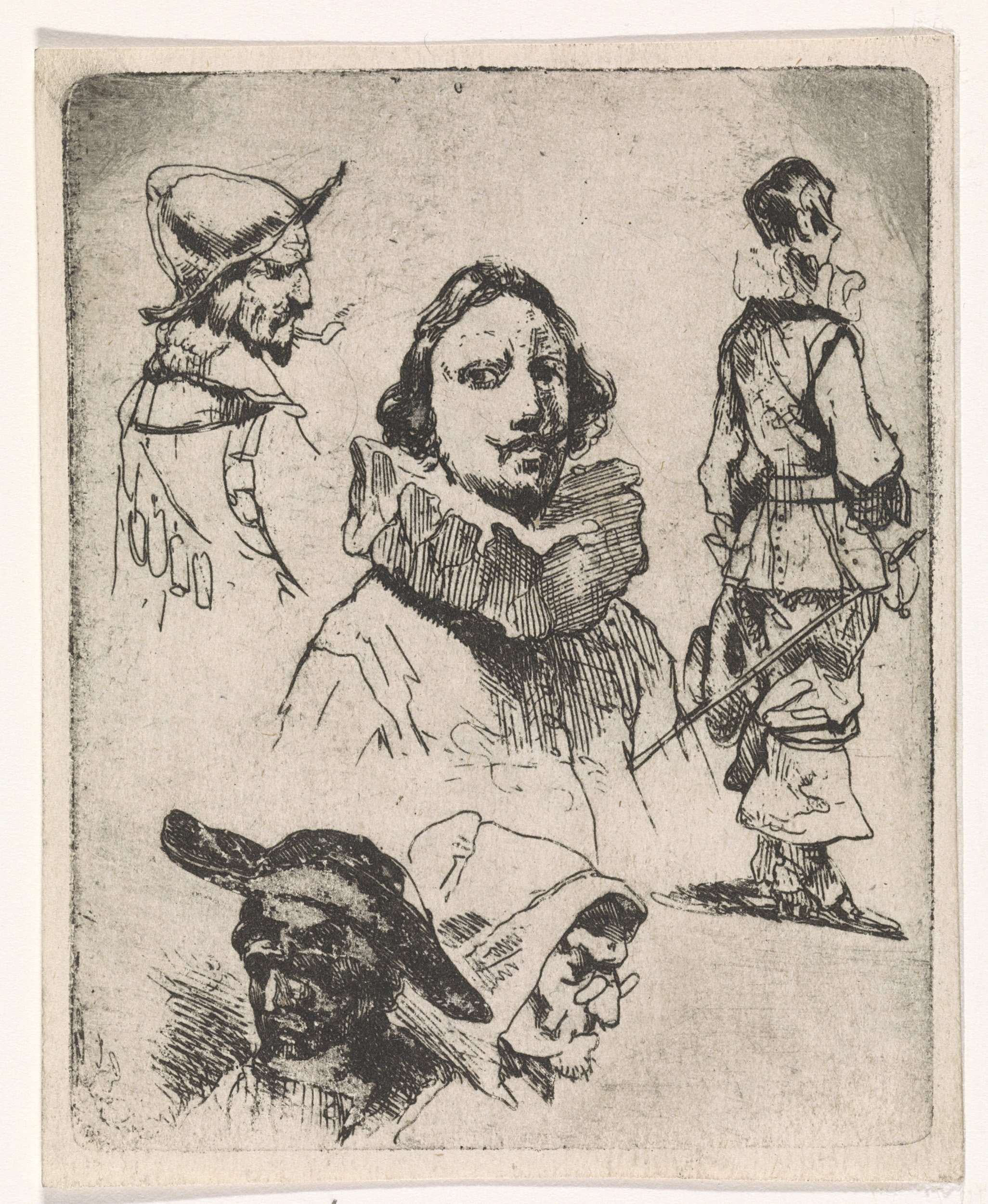 Studieblad met gezichten en figuren
