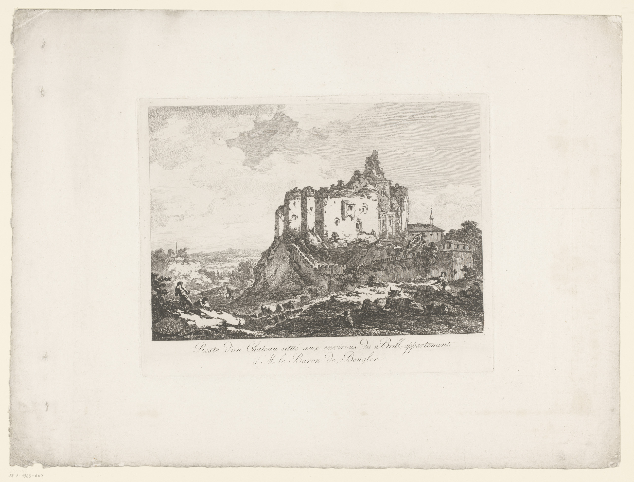 Landschap met ruïne en vee