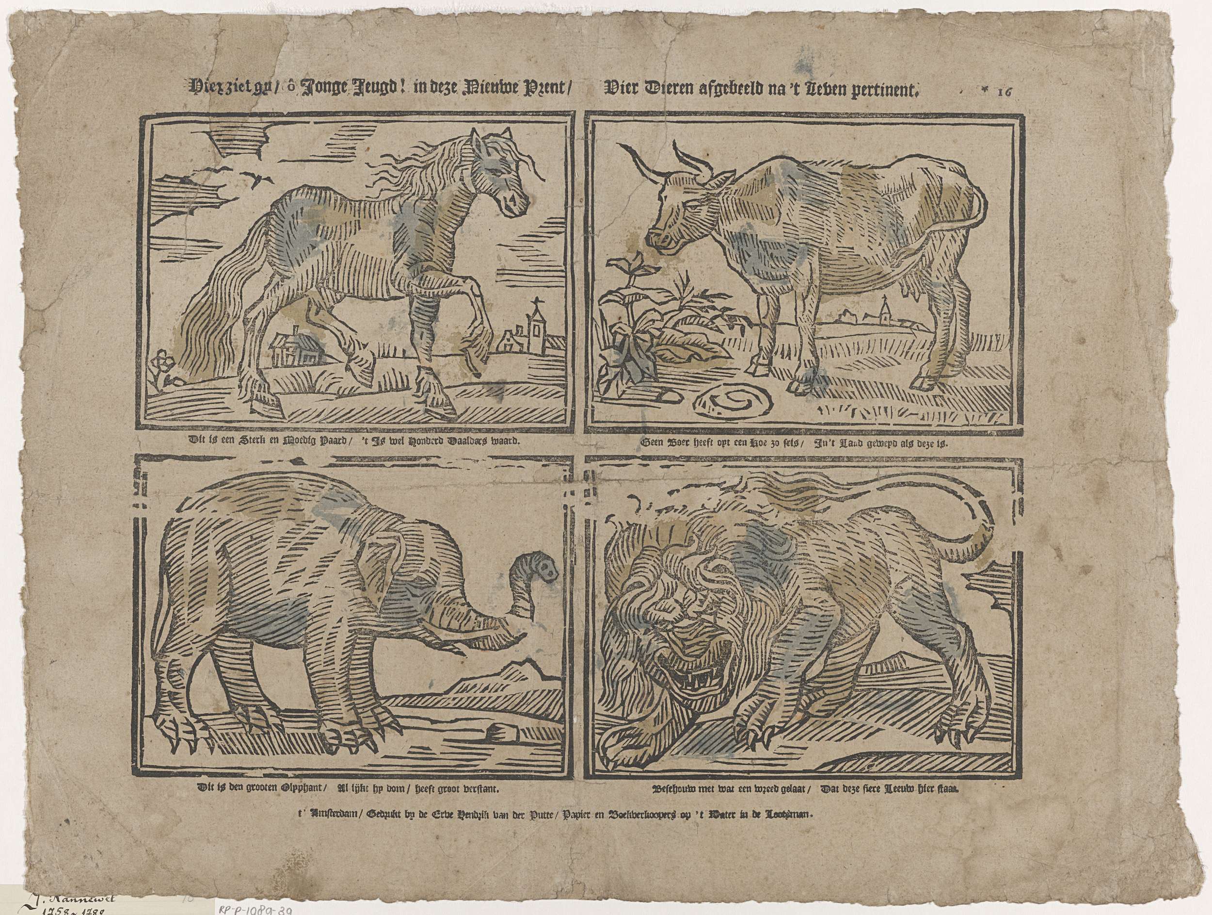 Hier ziet gy jonge jeugd! veel dieren af-gebeeld: / ...