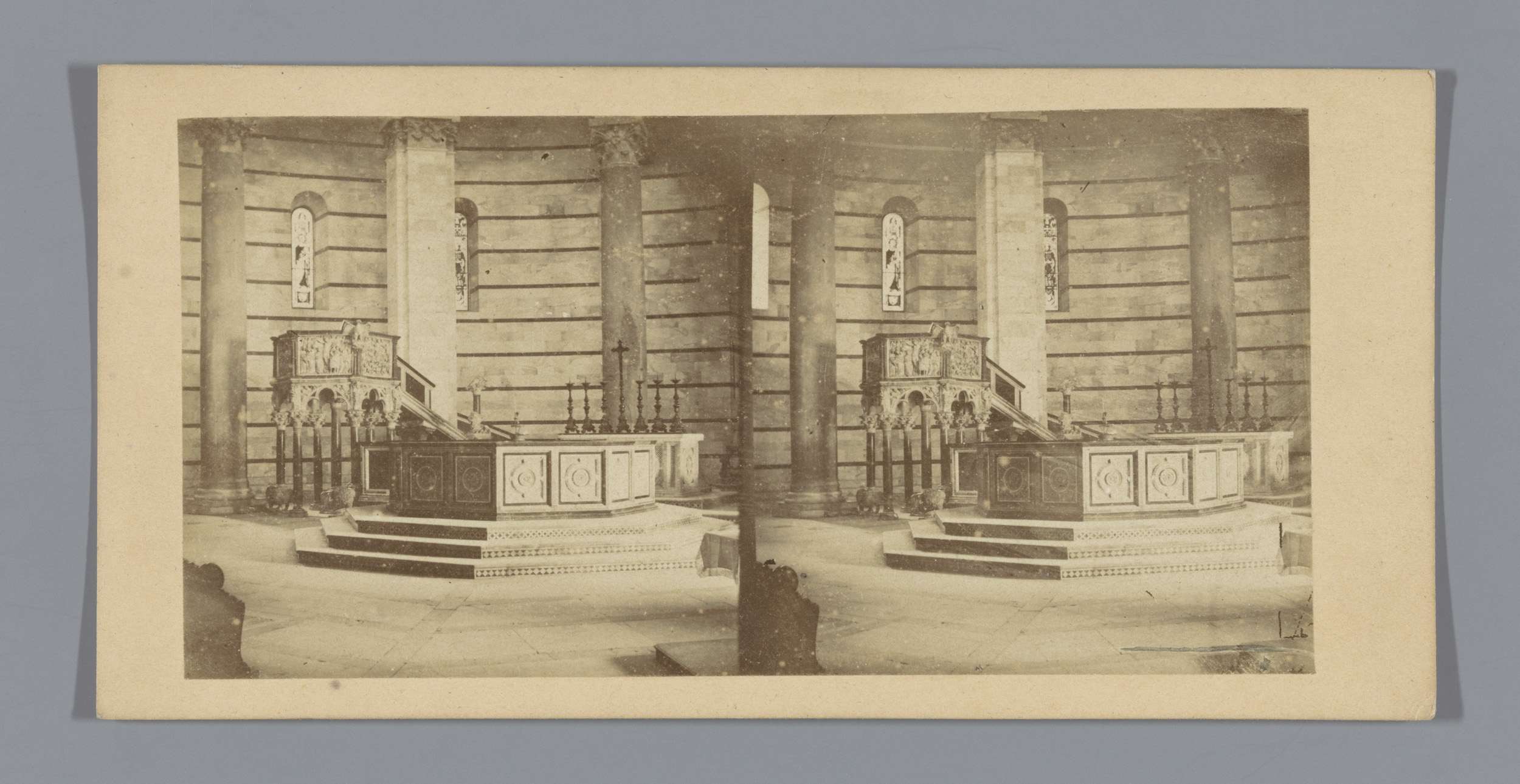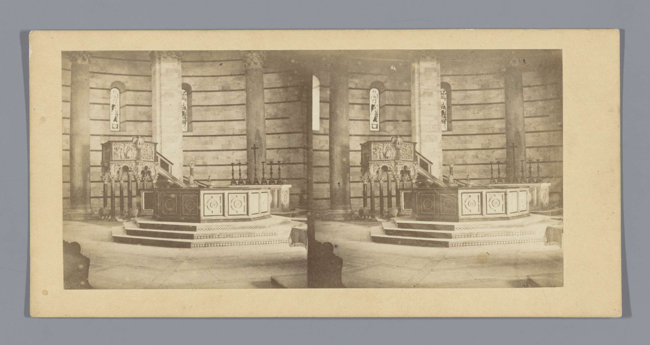 Doopvont en preekstoel in het Baptisterium te Pisa