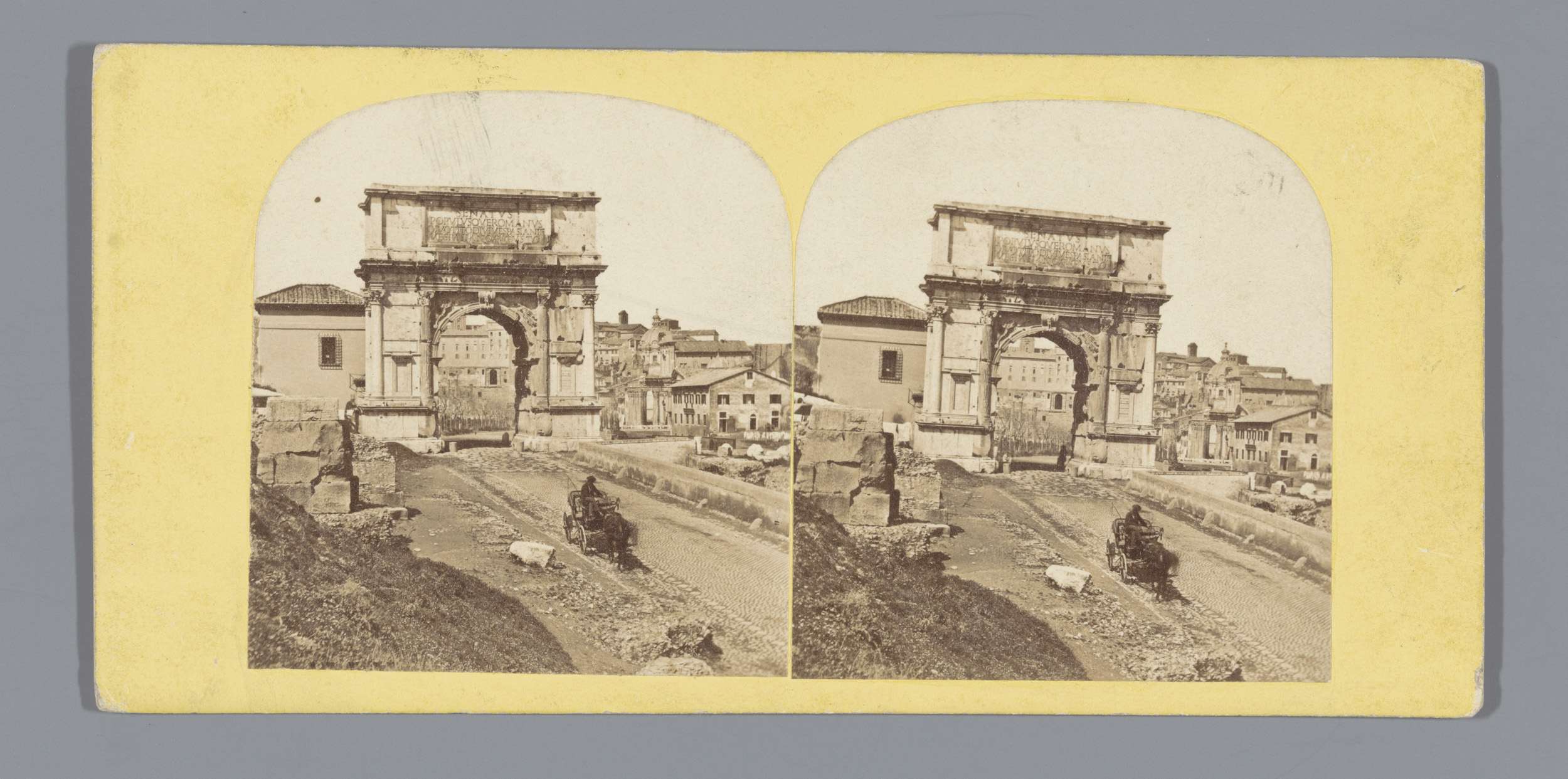 Gezicht op de Boog van Titus te Rome, met op de voor...