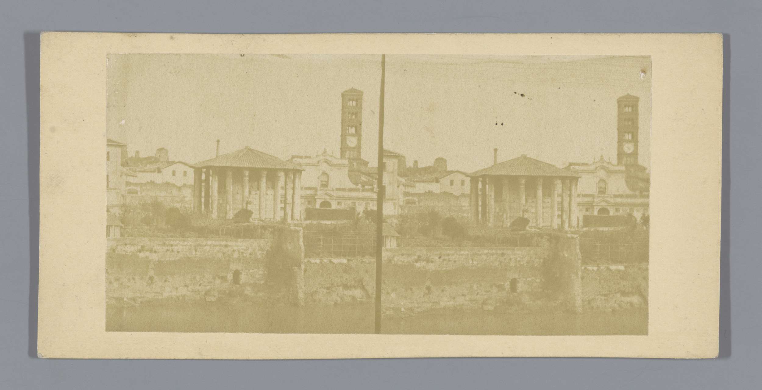 Gezicht op de Tempel van Hercules Invictus te Rome