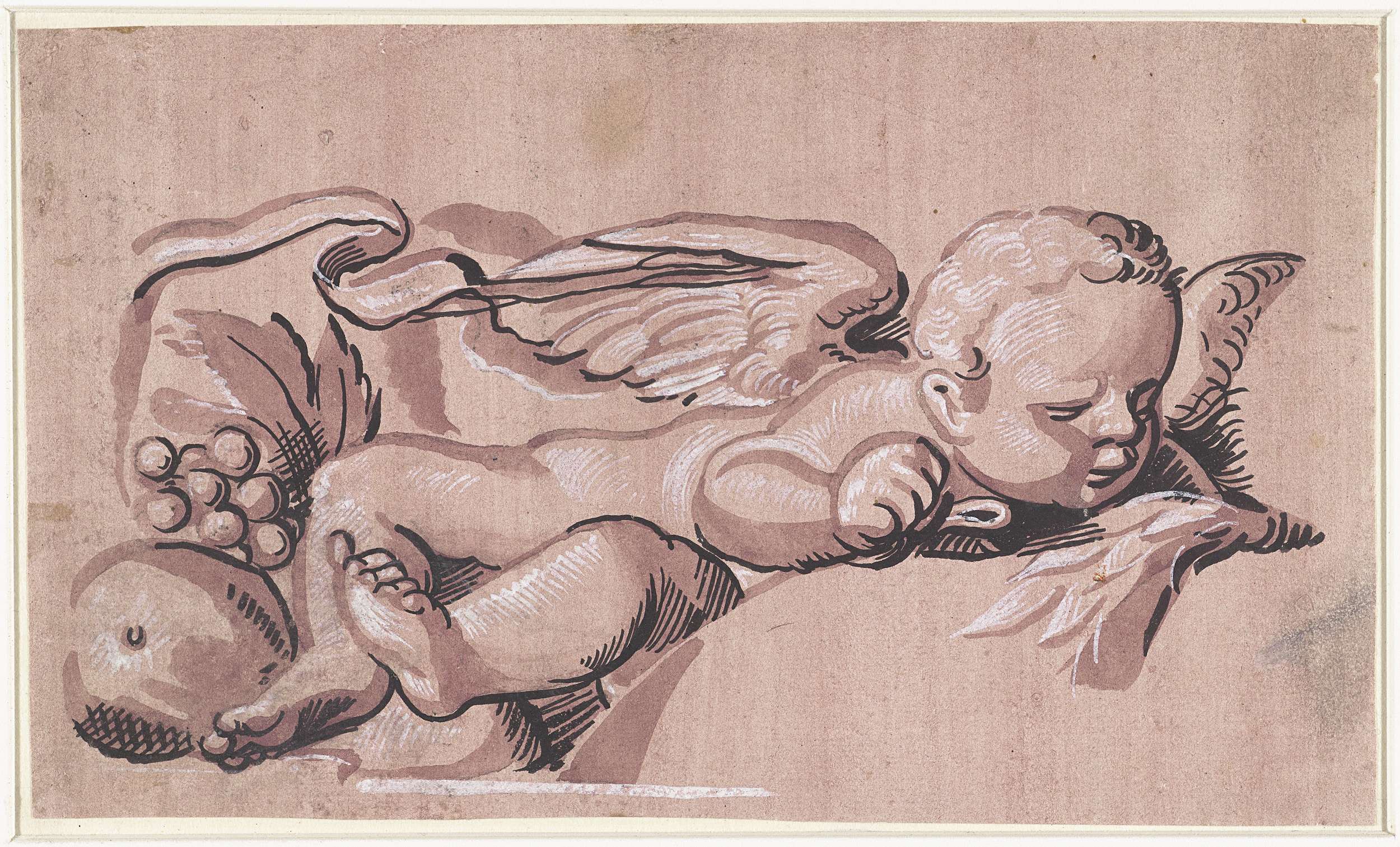 Liggend engeltje met vruchten