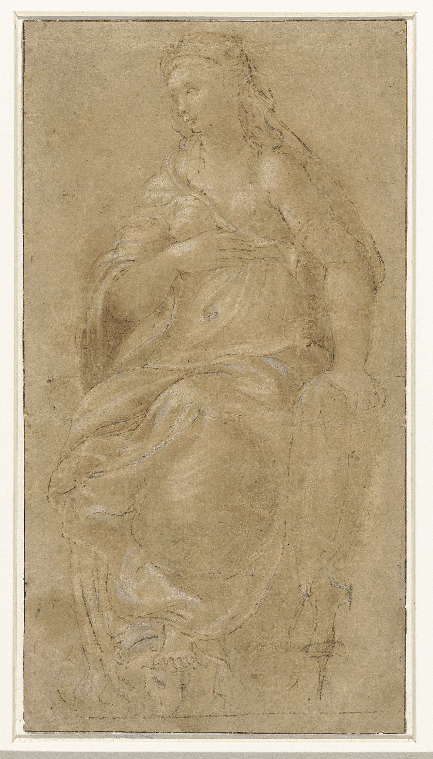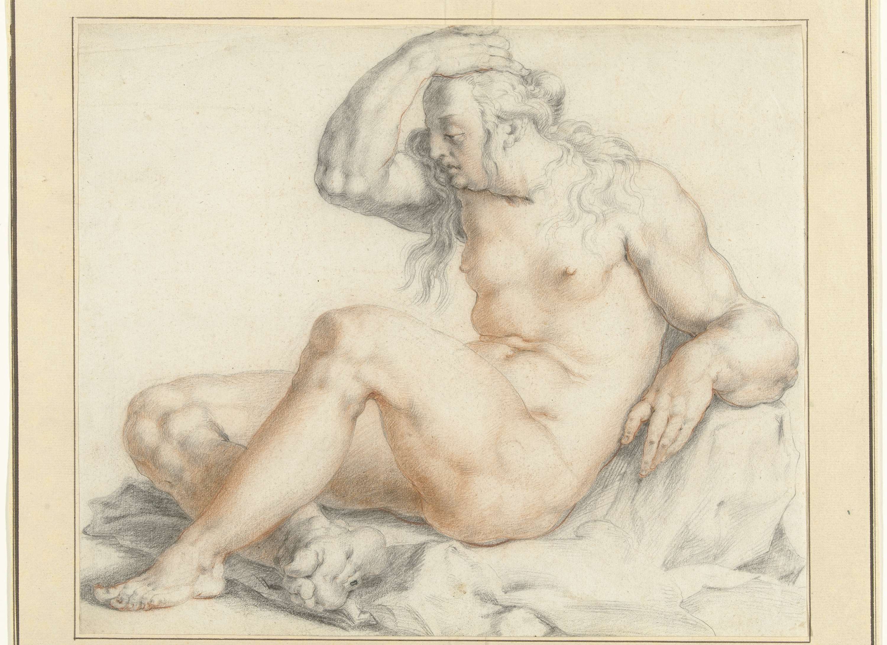 Naakte zittende vrouwenfiguur