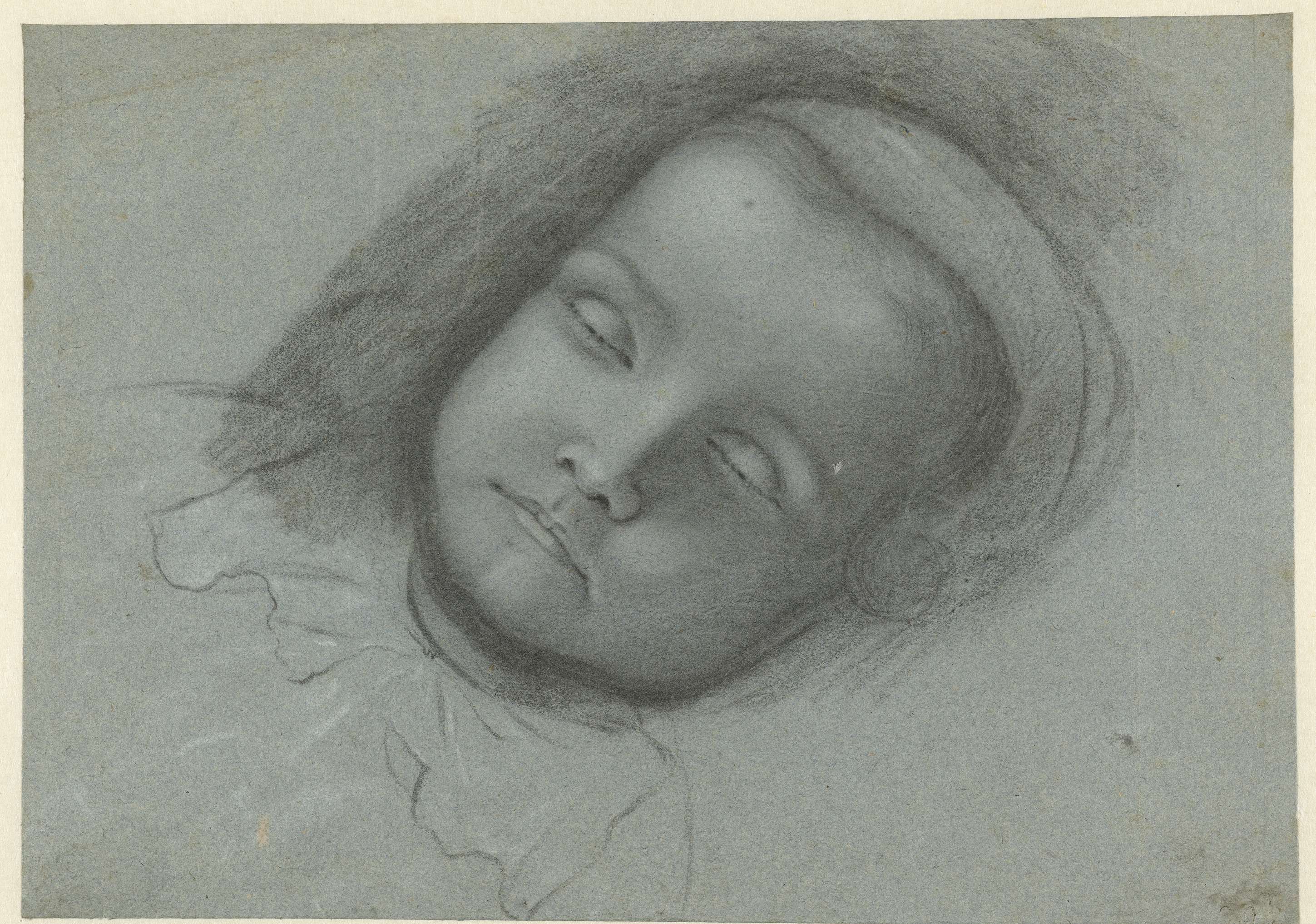 Hoofd van een dood kind, liggend op bed